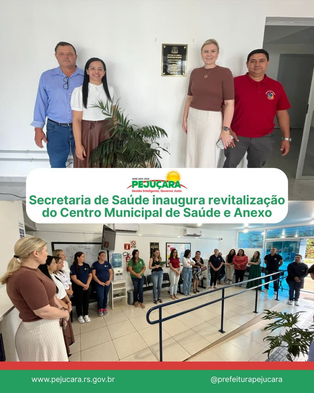 Nesta quarta-feira (25), ocorreu a inauguração da reforma do Centro Municipal de Saúde e do anexo da Secretaria de Saúde de Pejuçara, reunindo secretários, vereadores, coordenadores, demais autoridades municipais e comunidade. No Centro de Saúde, a obra contemplou a substituição completa da cobertura, com troca de telhas e calhas, além de pintura interna e externa e reparos no forro de gesso. No anexo da Secretaria de Saúde, foram executadas pintura interna e externa e a troca do piso.
