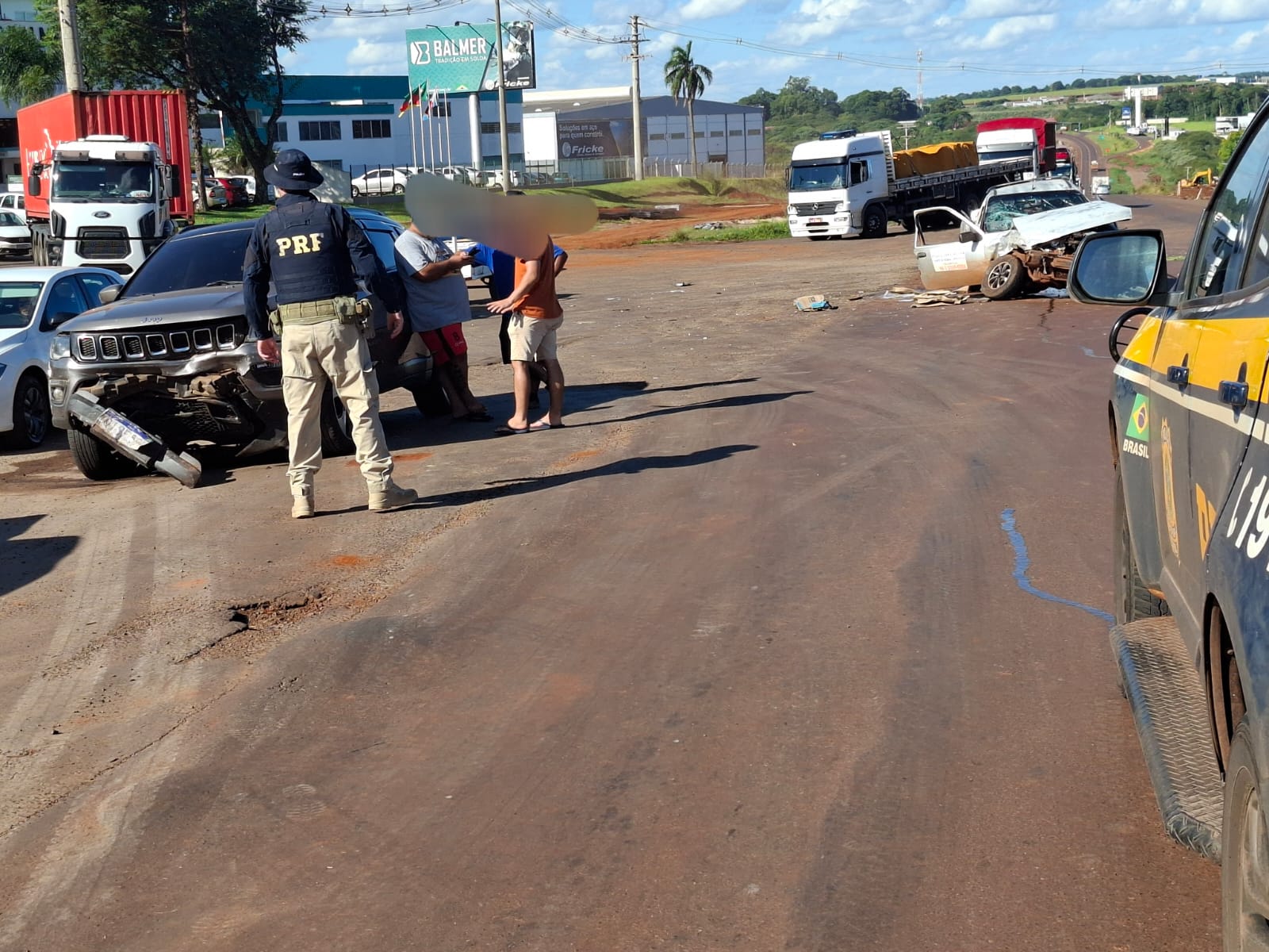 Acidente entre um automóvel, placa de Ijuí, e um veículo Jeep Compass, emplacado em Frederico Westphalen, aconteceu hoje à tarde na BR 285, imediações do cruzamento com a rua Hermann Wasserman, bairro Lambari de Ijuí. Danos na parte frontal dos veículos. Duas pessoas que estavam no carro de Ijuí ficaram feridas, a princípio com lesões leves.