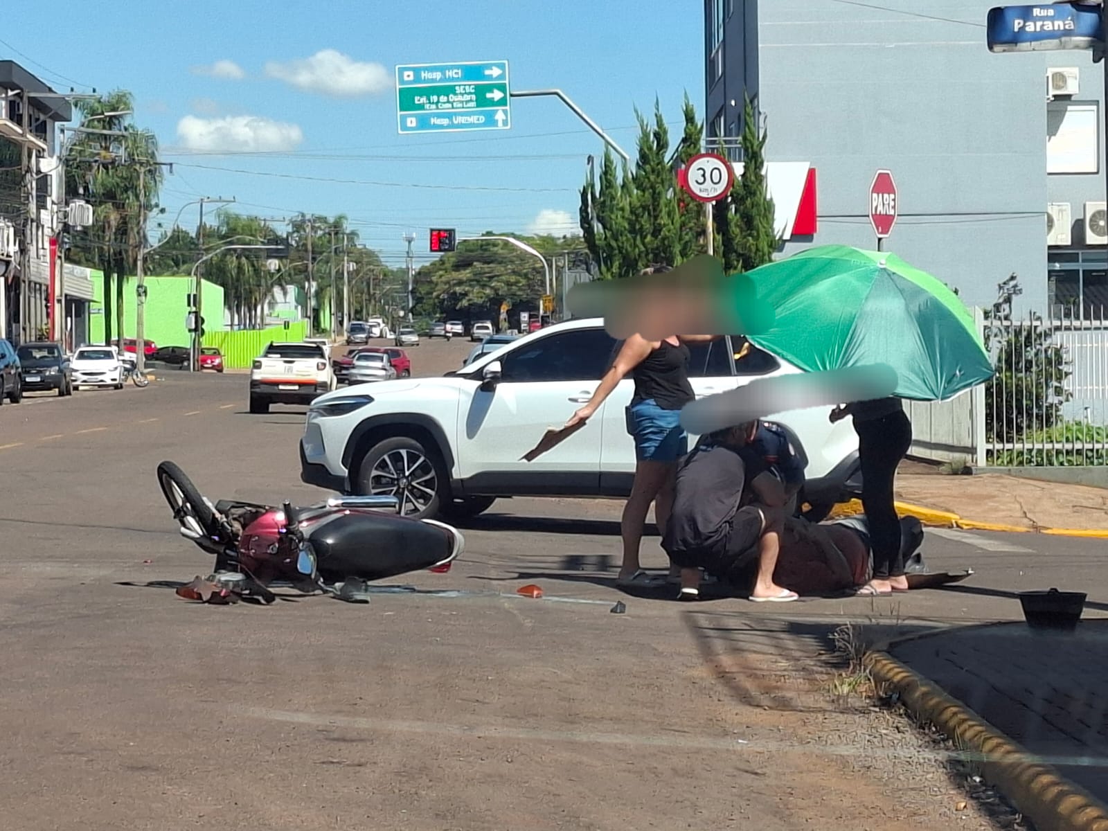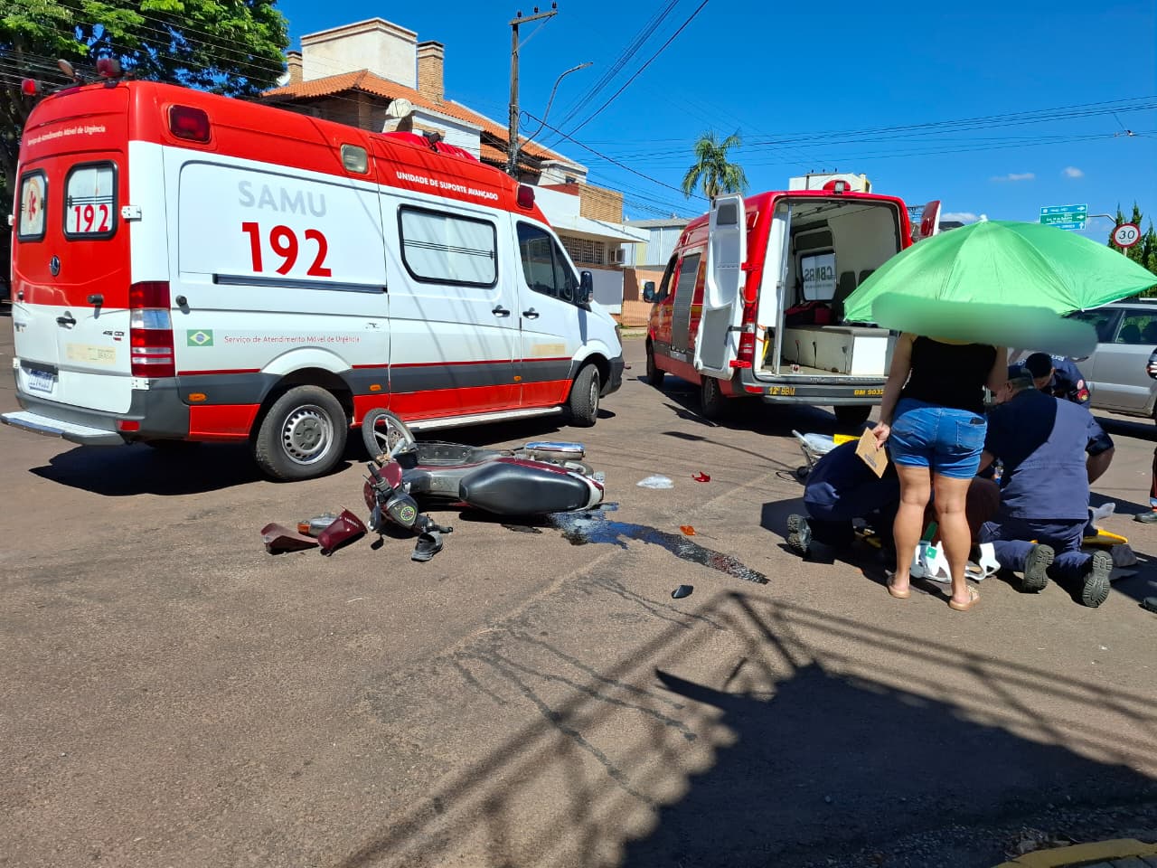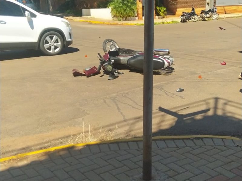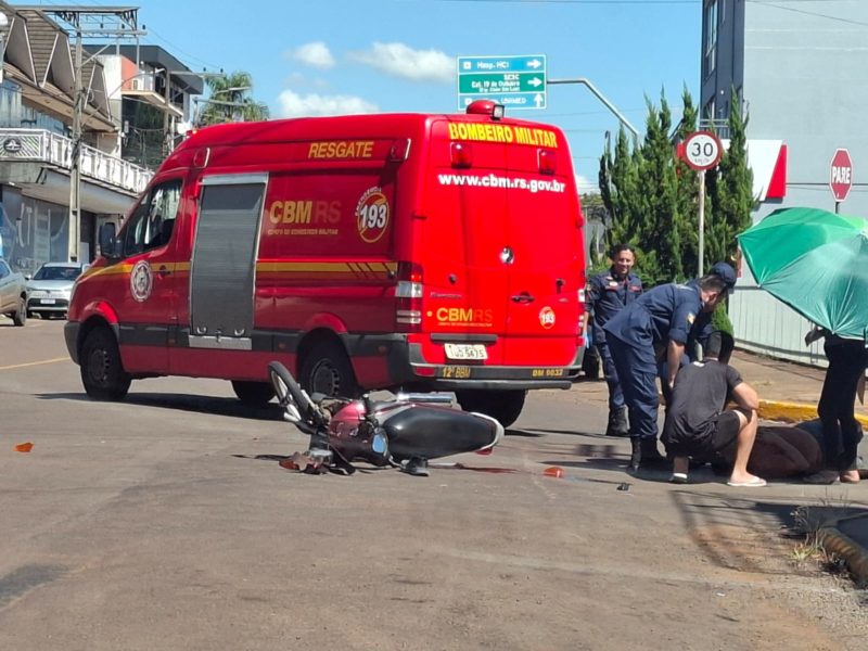 Um motociclista ficou ferido em acidente hoje à tarde na esquina da Avenida Getúlio Vargas e rua Paraná, em Ijuí. Bombeiros socorreram a vítima para atendimento médico. A moto teve danos de grande monta na parte dianteira. O outro veículo, uma pick up, sofreu prejuízos na lateral direita. No mesmo cruzamento foram registrados vários outros acidentes recentemente.