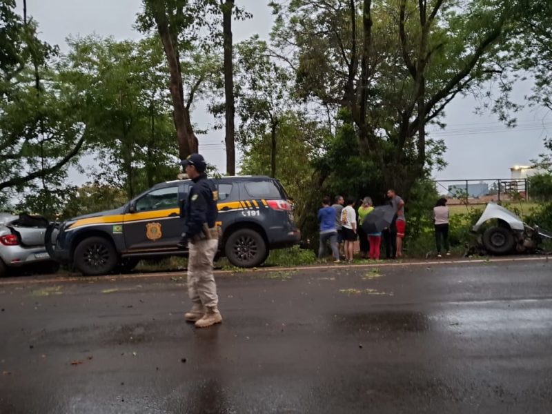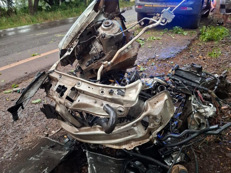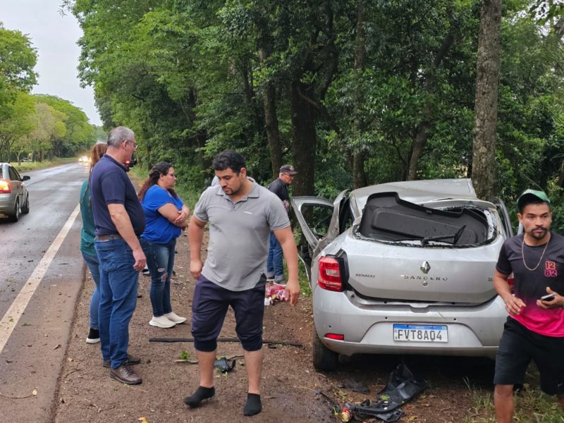 Um grave acidente mobilizou equipes de resgate na BR-285, na Linha 11, em Bozano, imediações da unidade da Cotripal, no final da tarde deste sábado. Um Renault Sandero, placa de Ijuí, ocupado por três irmãos, saiu da pista e colidiu em árvores às margens da rodovia. O impacto foi tão forte que o motor do carro se partiu em dois.