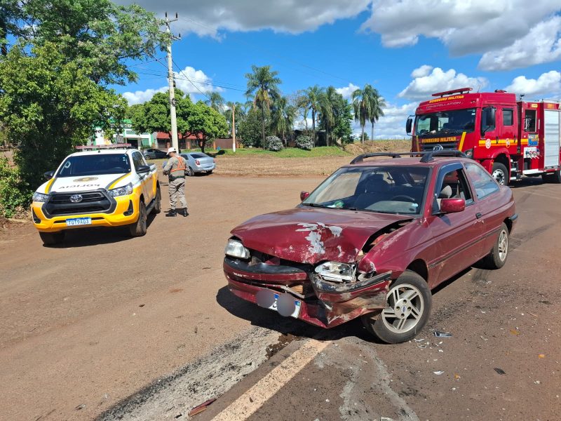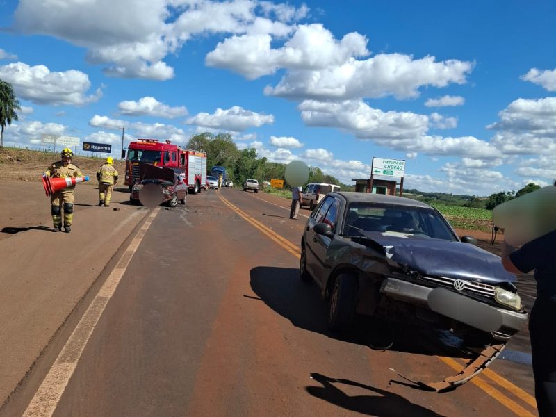 Colisão entre dois automóveis aconteceu por volta das 14 horas e 30 minutos de hoje na ERS 155, no distrito de Chorão, interior de Ijuí, região do trevo de acesso à Fonte-Ijuí. Apenas um menino teve ferimentos leves e também resultou com dores no abdômen, mas nada grave. Um dos veículos é um Gol, placa de Ijuí.