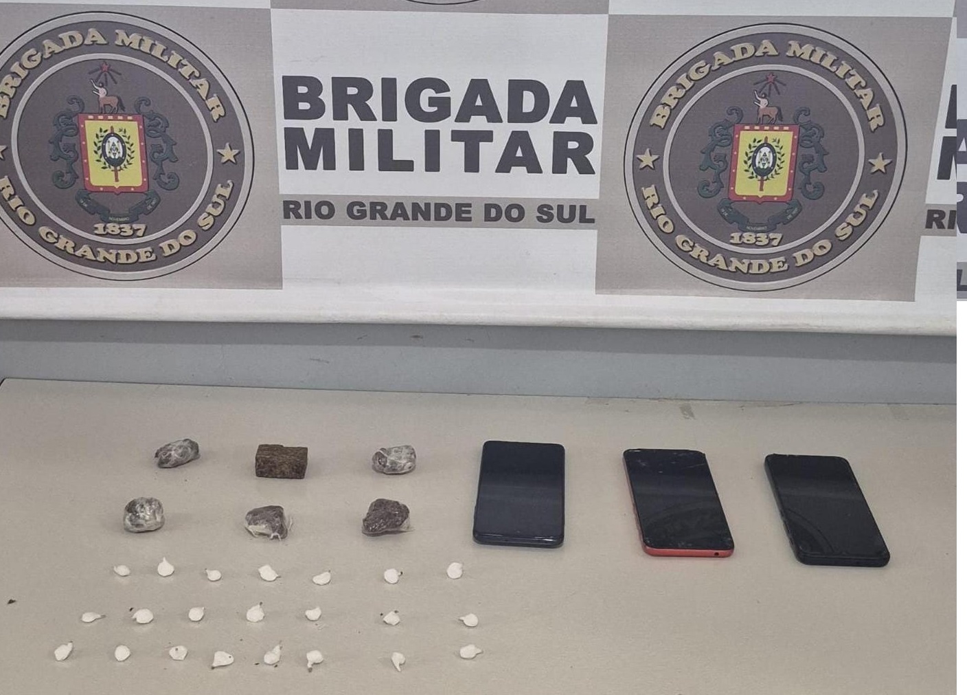 A Brigada Militar de Ijuí realizou, hoje, a prisão de uma mulher por acusação de tráfico de drogas. A detenção aconteceu no bairro Quinze de Novembro. Policiais receberam informações sobre um local que seria utilizado para comercializar entorpecentes. Realizada a averiguação, abordaram uma mulher e durante revista pessoal e diligências foram apreendidas seis porções de maconha, 22 porções de cocaína, ainda três celulares. A mulher foi apresentada na Polícia Civil de Ijuí.