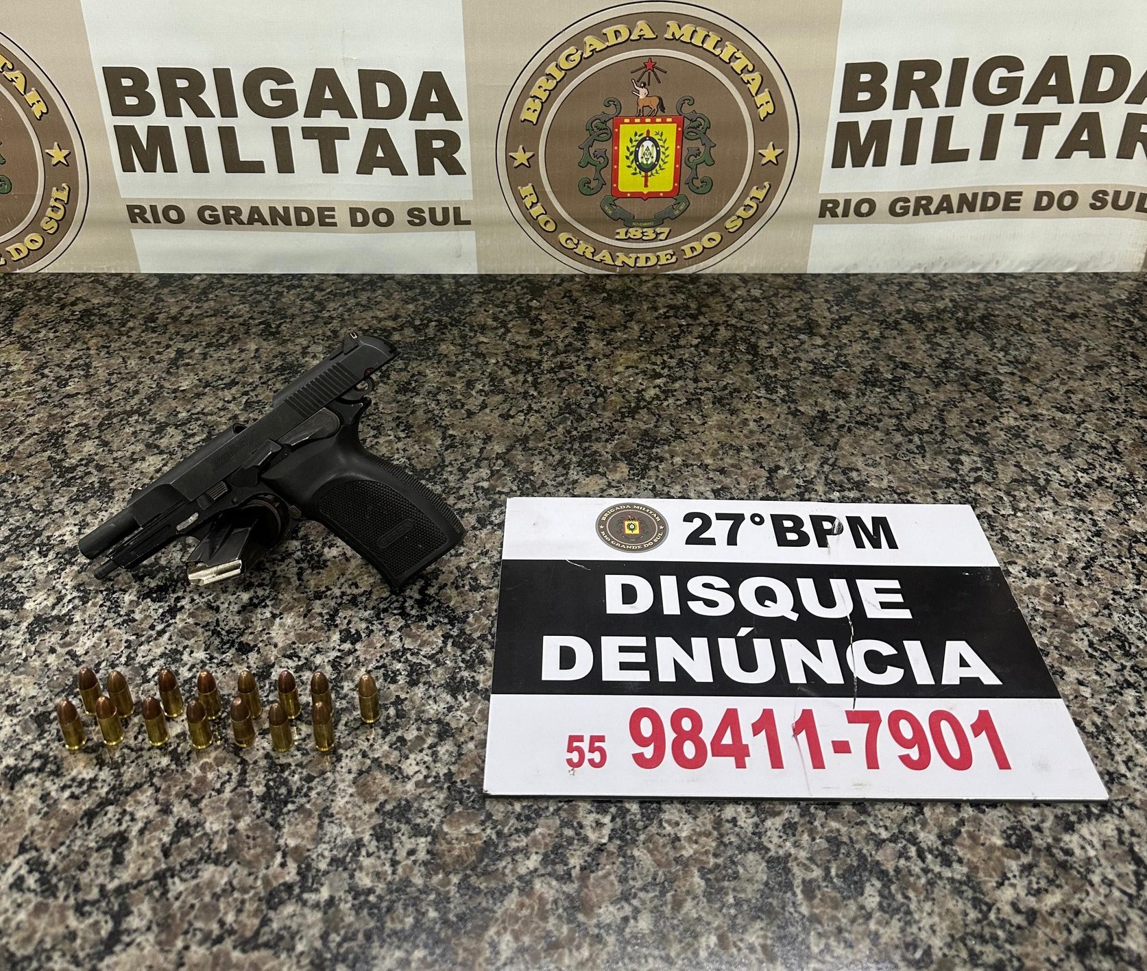 Foto: Com. Soc. 27º BPM A Brigada Militar realizou a apreensão de um adolescente na madrugada de hoje, 25, por posse ilegal de arma de fogo de uso restrito, no bairro Rosenthal, em Santo Ângelo.