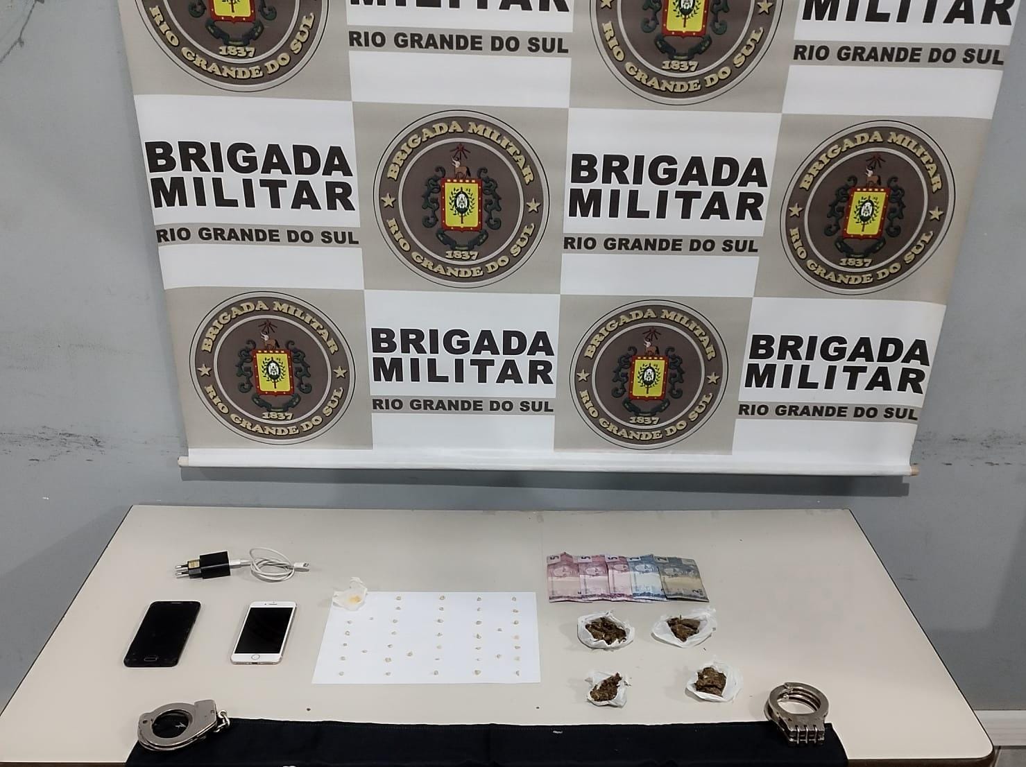 No local, foram encontradas porções de maconha e um malote com pedras de crack. Ao todo, foram apreendidas 31,3 gramas de maconha, 4,1 gramas de crack, além de dois celulares.