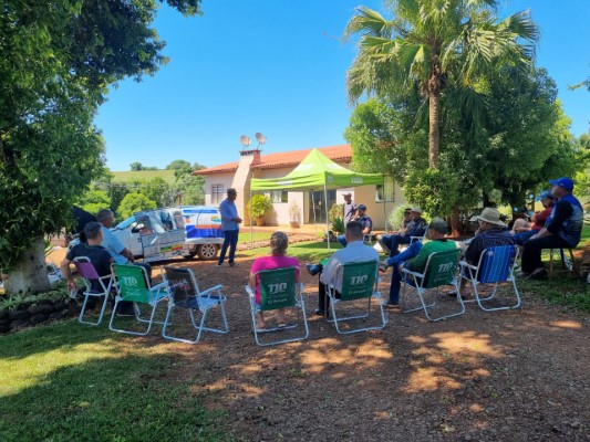 Em roda de conversa promovida nesta quinta-feira (27/11), pela Emater/RS-Ascar, agricultores de Porto Mauá tiveram a oportunidade de trocar experiências e sanar dúvidas técnicas sobre a implantação e uso de sistemas de irrigação, manejo adequado do solo e da água, bem como acesso a políticas públicas. A atividade foi realizada a campo, na localidade de Campo Alegre, junto à propriedade de João Roque e Sandra Gnatta, que é uma Unidade de Referência Tecnológica em pastagens e irrigação.