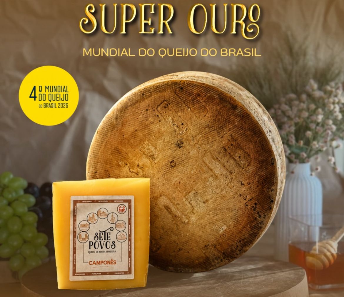 Foto: Divulgação/Redes Sociais Uma agroindústria de Jóia, no Noroeste do Rio Grande do Sul, conquistou a principal premiação do 4º Mundial do Queijo do Brasil, realizado neste mês em São Paulo. A Camponês – Produtos Artesanais recebeu a medalha Super Ouro com o queijo autoral “Sete Povos”, em sua primeira participação no evento.