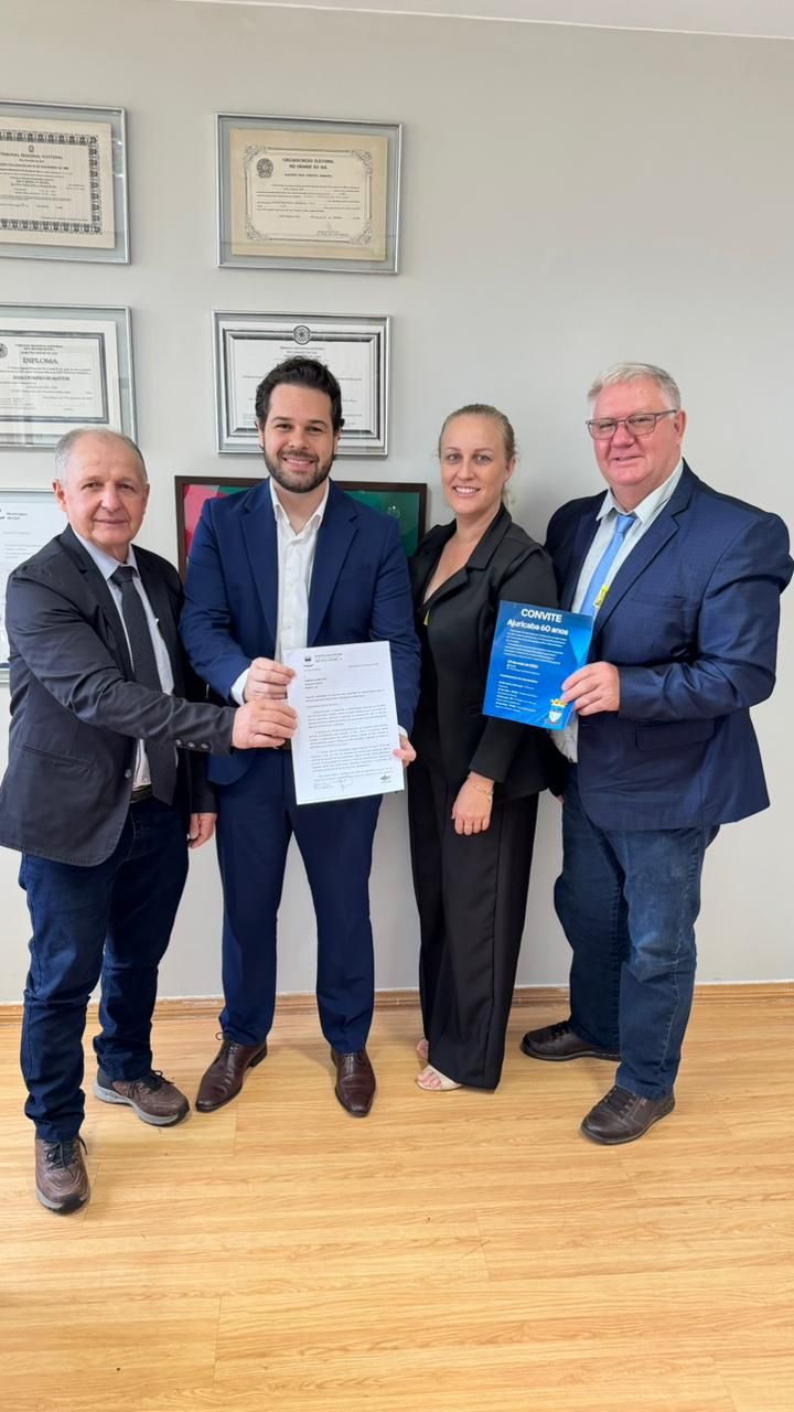 Durante a última semana, ao lado do prefeito de Ajuricaba, Paulo Dolovitsch e da secretária de Saúde, Luana Maron Torquetti, o vereador Milton Stephanini cumpriu agenda em Brasília, visitando gabinetes de deputados e senadores em busca de recursos para o município. A agenda, segundo ele, foi produtiva: no gabinete do deputado Pompeo de Mattos, receberam a confirmação de mais uma emenda, no valor de R$ 200 mil, destinada ao Hospital de Ajuricaba. Na ocasião, a comitiva também agradeceu ao parlamentar pela emenda de R$ 100 mil enviada no mês passado à APAE de Ajuricaba.