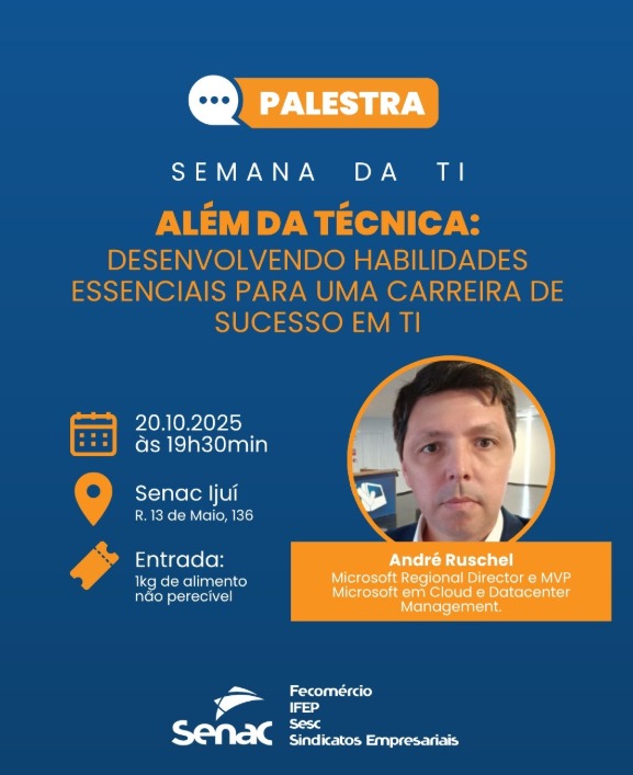 O Diretor da Microsoft, André Ruschel, é o palestrante da noite de hoje, 20, na chamada Semana da TI, promovida pelo SENAC Ijuí.