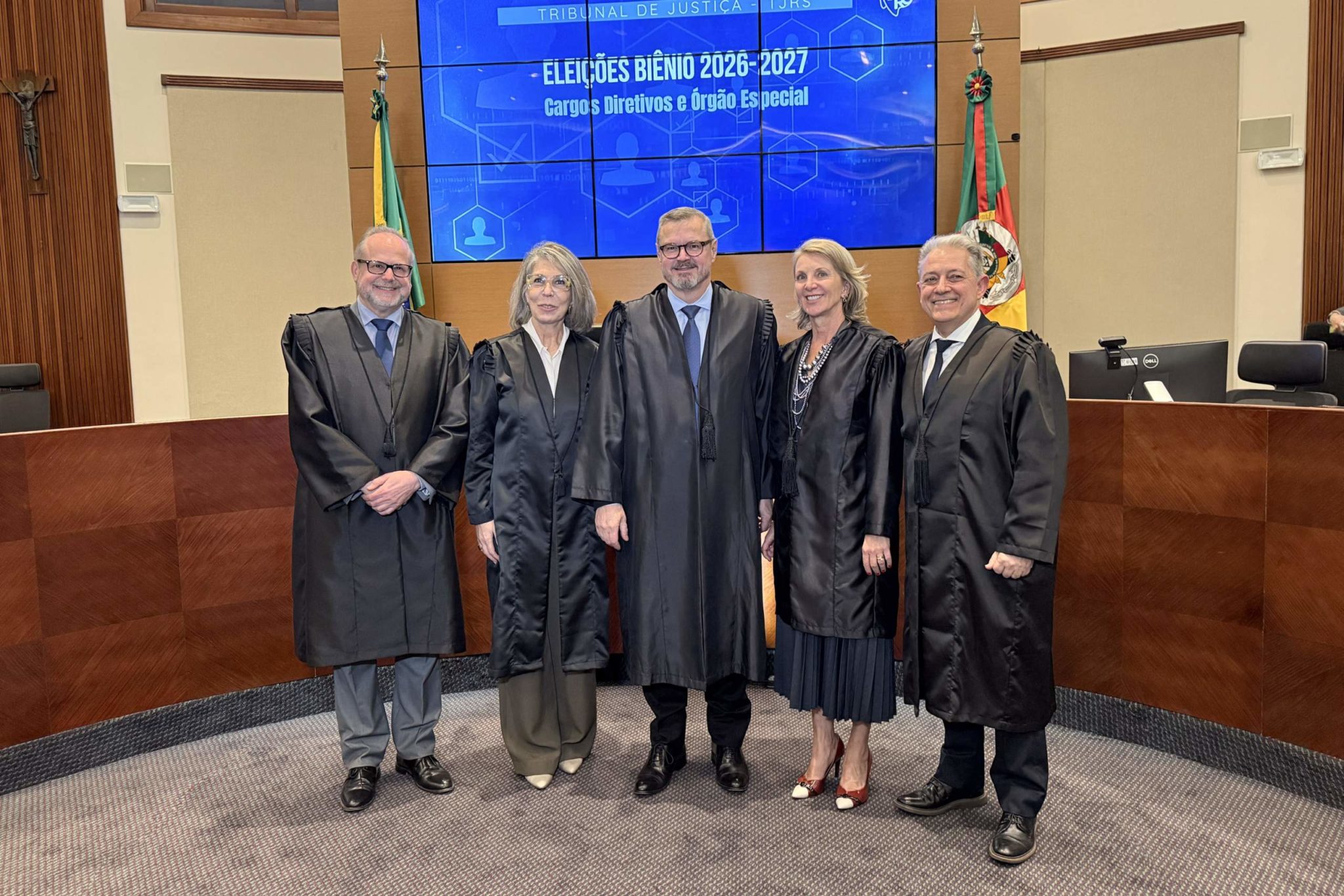 O Tribunal de Justiça elegeu na tarde desta segunda-feira (24/11) a nova administração para o biênio 2026/2027. O Desembargador Eduardo Uhlein foi eleito Presidente, tendo o Desembargador Cláudio Luís Martinewski como 1º Vice, a Desembargadora Rosane Wanner da Silva Bordasch na 2ª Vice e a Desembargadora Ana Paula Dalbosco como 3ª Vice. O Desembargador Ricardo Pippi Schmidt foi eleito Corregedor-Geral da Justiça.