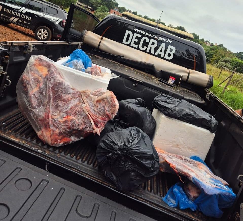 A Polícia Civil apreendeu uma arma de fogo e mais de 90 quilos de carne bovina provenientes de abigeato durante operação realizada ontem, 19, em Panambi. Um suspeito foi detido e conduzido à delegacia.