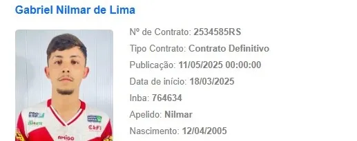 Oriundo da base do São Luiz, o atacante Gabriel Nilmar, 20 anos, teve contrato renovado com o clube ijuiense. O novo vínculo consta no BID da CBF e é válido até março de 2026. Nilmar fez parte do elenco principal em 2025 e entrou em campo na final da Taça Farroupilha, contra o Ypiranga, em Erechim. No segundo semestre, defendeu o Santa Cruz na disputa da Divisão de Acesso.