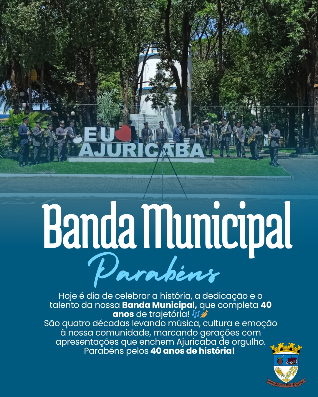 A Banda Municipal de Ajuricaba celebra hoje os 40 anos de história, marcando uma trajetória de dedicação à música, à cultura e à valorização do município. Fundada em 1986, a banda teve seu nome escolhido por meio de um concurso, iniciativa que, na época, também contribuiu para divulgar o nome de Ajuricaba e fortalecer a identidade local.