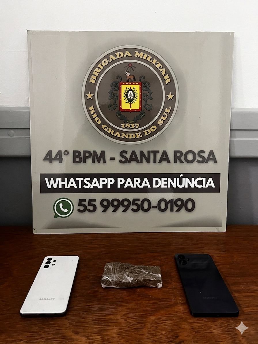 Em Santa Rosa, ontem à tarde, a Brigada Militar prendeu três suspeitos de tráfico de entorpecentes. Também houve localização de 51 gramas de maconha e dois aparelhos celulares. O trio foi encaminhado para a Polícia Civil, onde foi lavrada prisão em flagrante para um dos indivíduos.