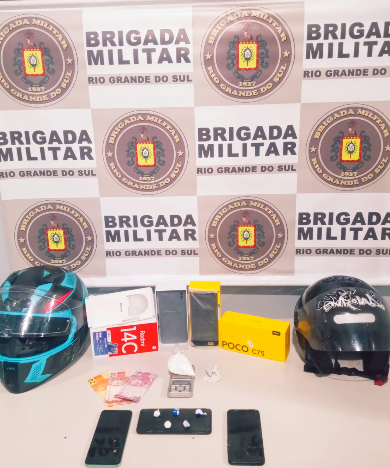 Ontem à noite, a Brigada Militar de Ijuí prendeu um homem e apreendeu um menor de idade durante ocorrência de tráfico de entorpecentes, no centro da cidade. Policiais abordaram uma motocicleta e, durante revista pessoal e diligências, localizaram seis porções de cocaína, uma porção de maconha, balança de precisão e cinco telefones celulares. O caso foi encaminhado para a Polícia Civil de Ijuí.