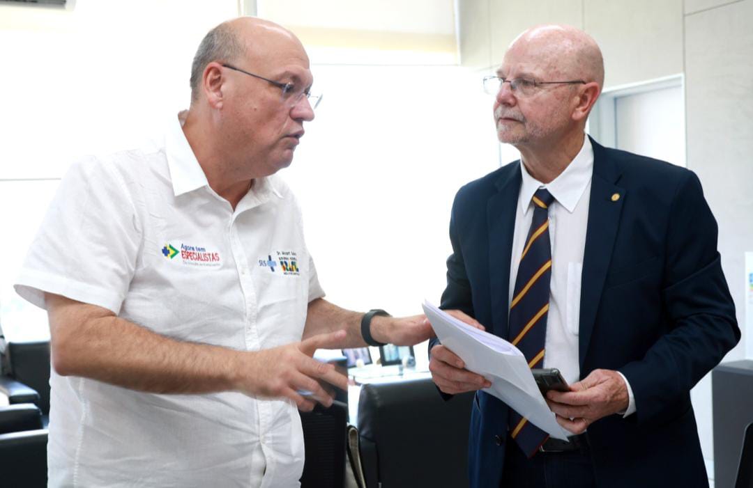 O deputado federal Bohn Gass esteve reunido com o Dr. Mozart Júlio Tabosa Sales, secretário de Atenção Especializada à Saúde do Ministério da Saúde, para reforçar o convite ao ministro Alexandre Padilha para visitar o município de Ijuí e participar da entrega oficial do novo Acelerador Linear para Radioterapia do Hospital de Clínicas de Ijuí.