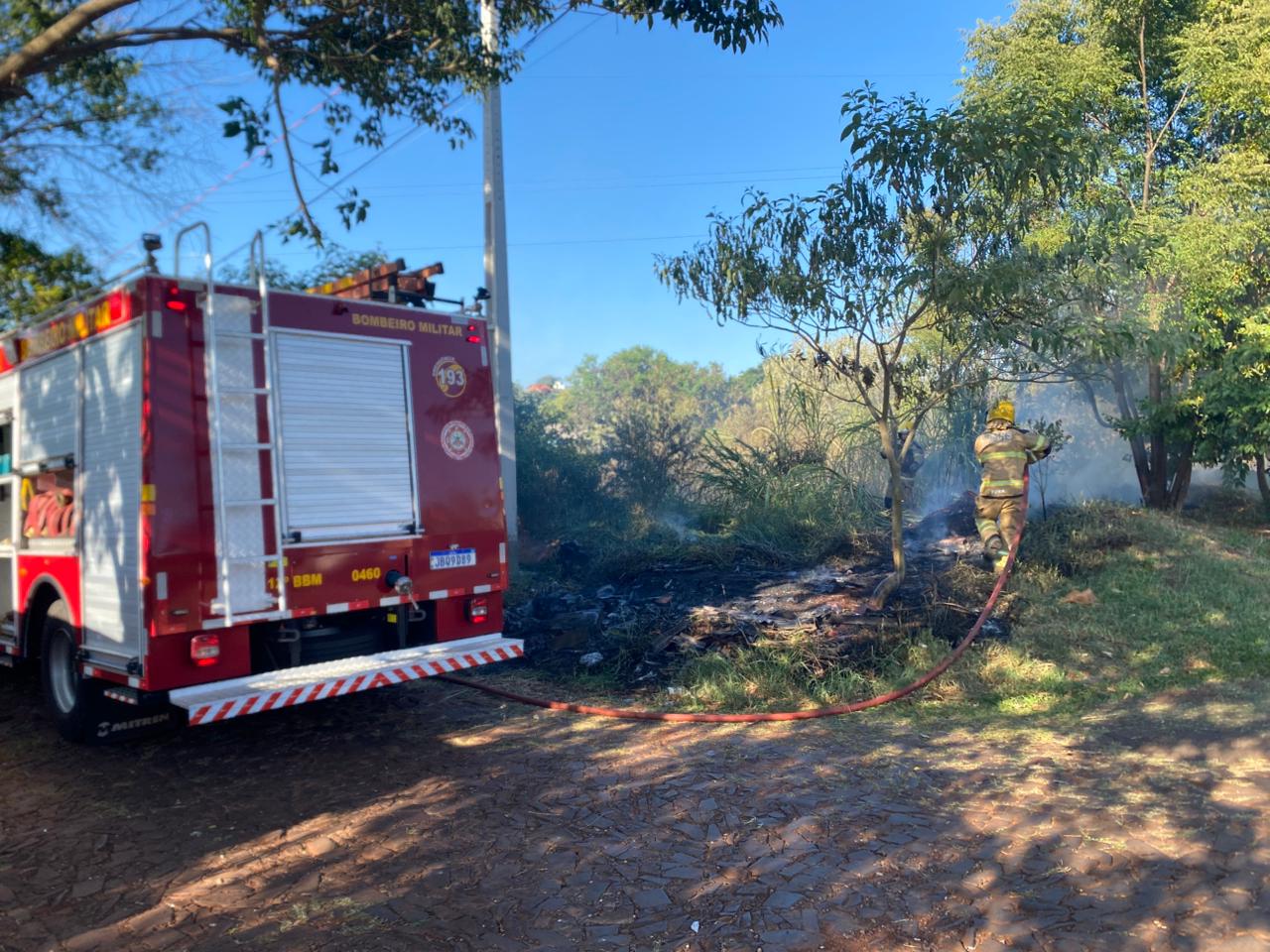 Um incêndio foi registrado na tarde desta segunda-feira (9), em um terreno localizado na rua João Prost, no bairro Thomé de Souza.