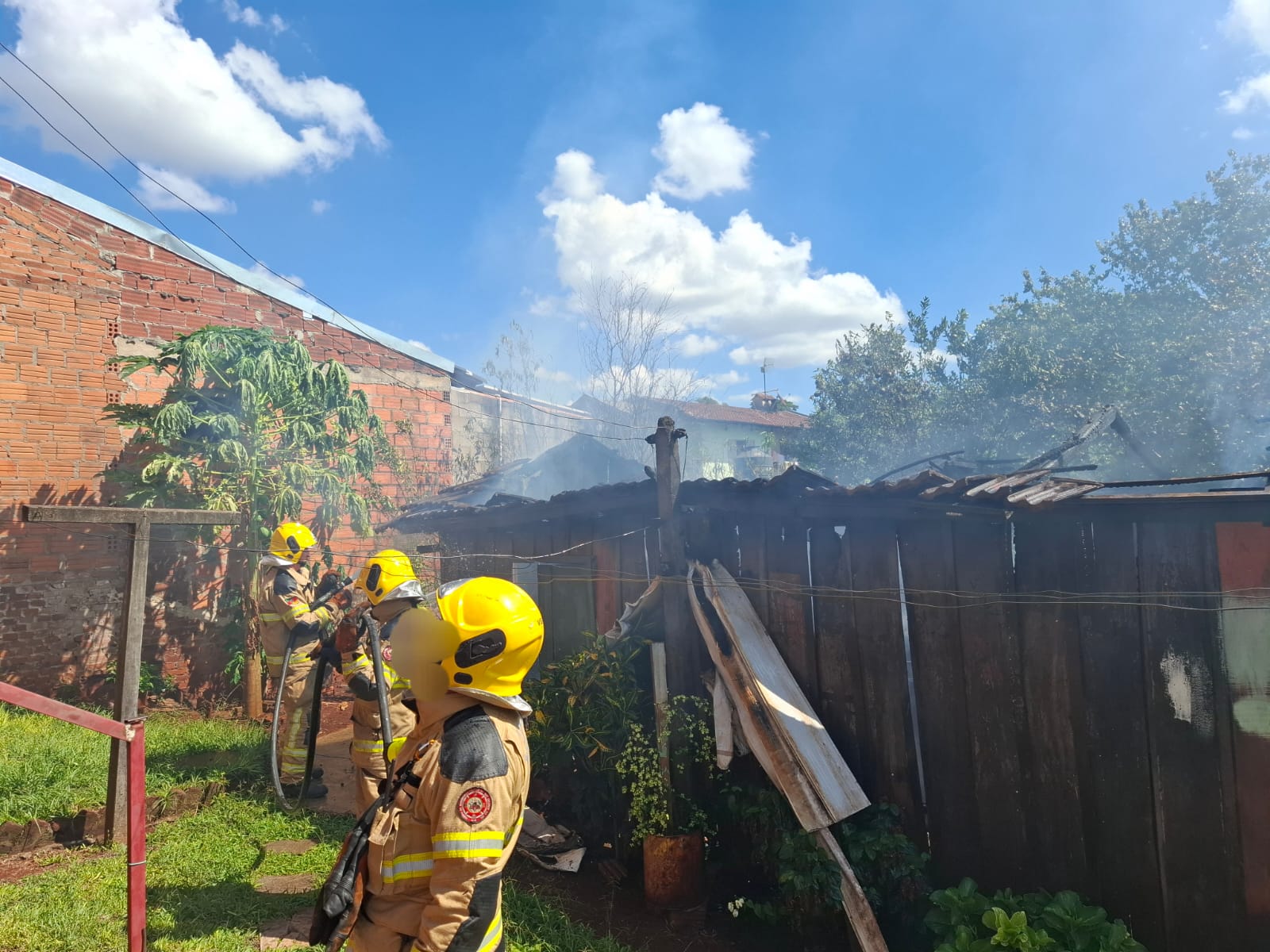 Bombeiros combatem incêndio em residência no bairro Glória