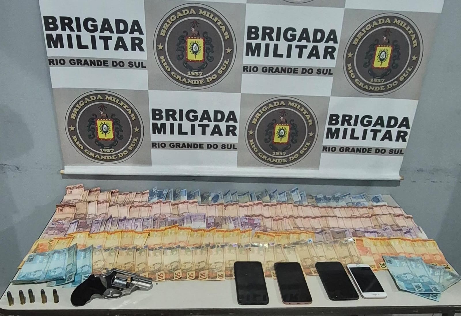 A ação ocorreu após denúncias de que o suspeito estaria exibindo uma arma em via pública. Com ele, os policiais apreenderam um revólver calibre .38 municiado, dinheiro e quatro celulares.