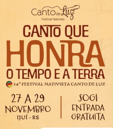 O Festival Nativista Canto de Luz movimenta Ijuí nesta semana com uma programação cultural intensa e aberta ao público na SOGI. Entre os dias 27 e 29, o evento reúne shows, etapas classificatórias e homenagens à tradição missioneira.