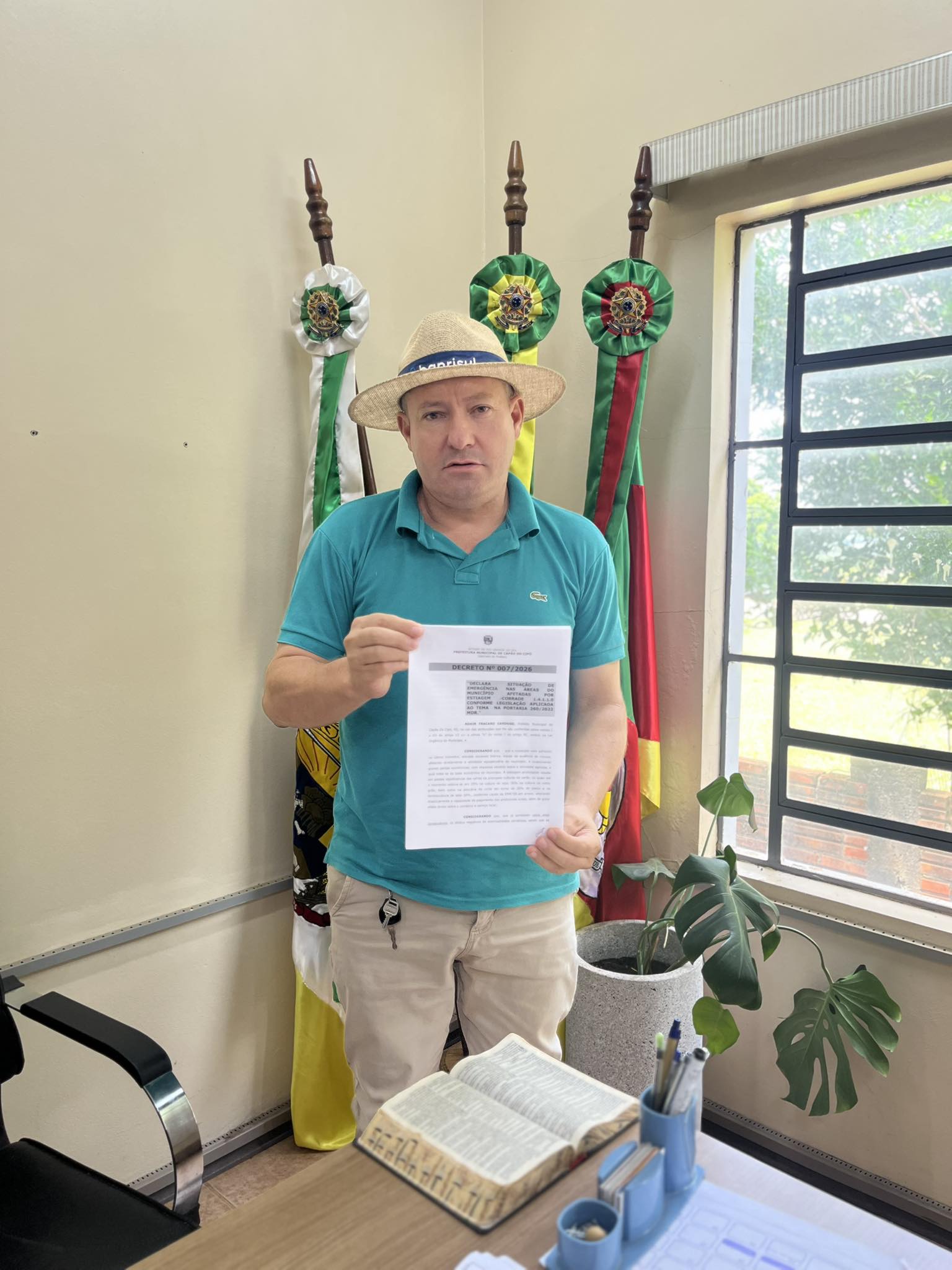 Prefeito Adair Fracaro Cardoso A prefeitura de Capão do Cipó decretou situação de emergência no município em razão das perdas causadas pela estiagem. Os prejuízos já são significativos, principalmente nas lavouras de soja e milho, com estimativa de quebra em torno de 35% da produção, o que impacta diretamente os produtores rurais e a economia local. A administração de Capão do Cipó realiza levantamentos e busca medidas para minimizar os danos e prestar apoio às famílias atingidas.