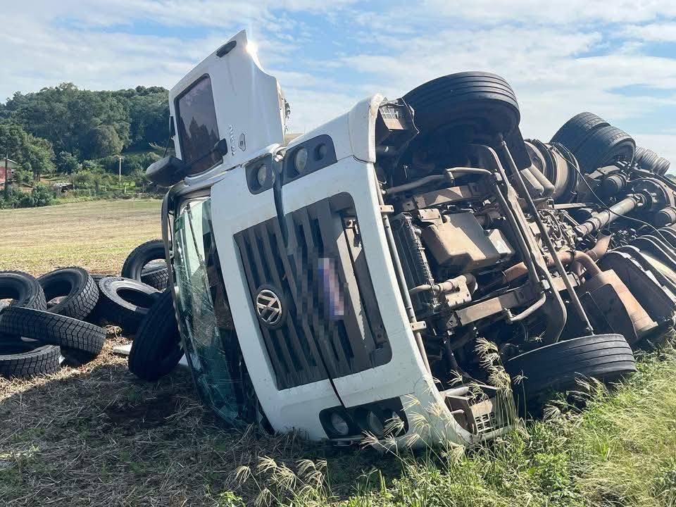 Uma carreta com placas de Santa Maria tombou no quilômetro 44 da RS-135 na manhã desta quinta-feira (16). O acidente ocorreu no trecho entre Getúlio Vargas e Sertão, quando o veículo saiu da pista e parou às margens da rodovia.
