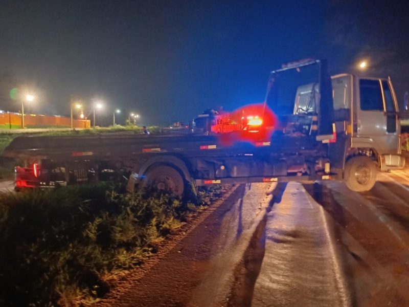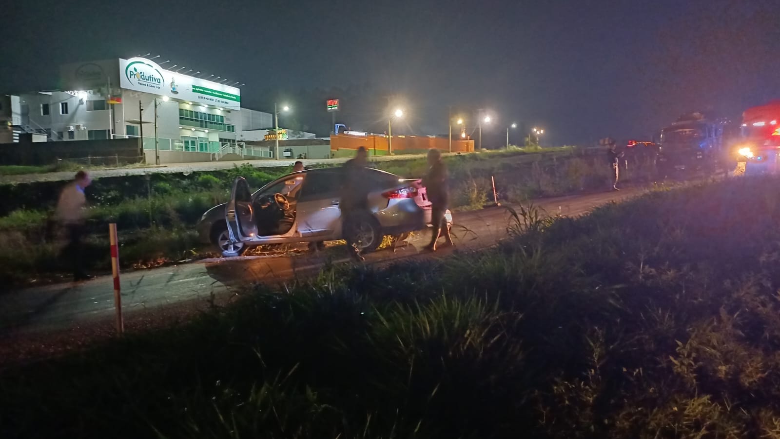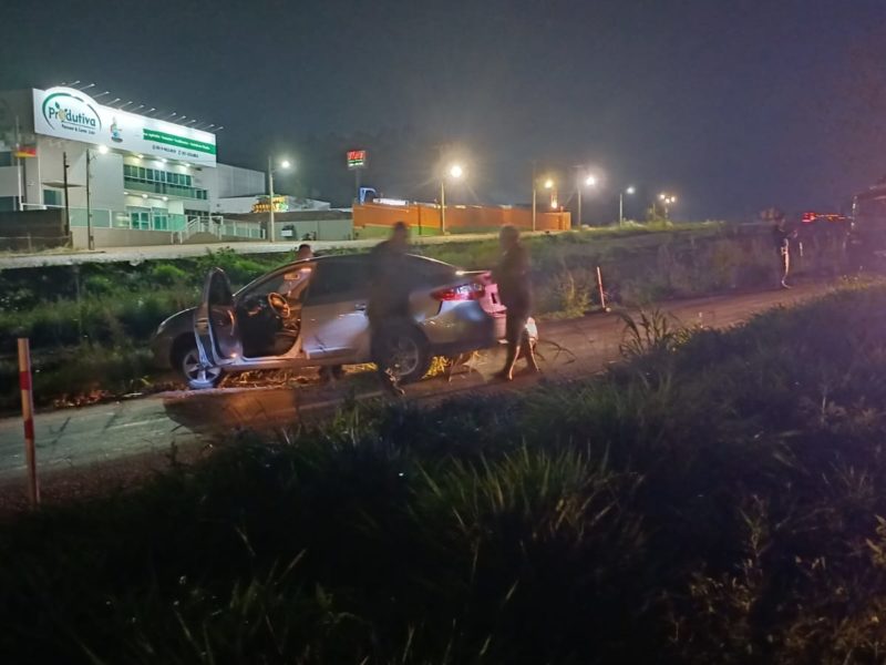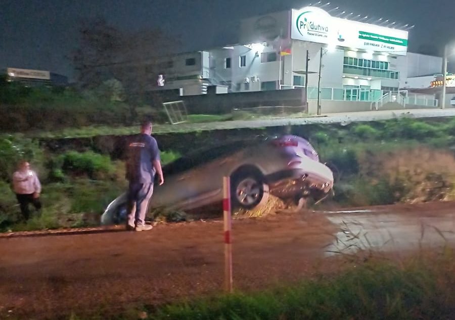 Carro cai em vala na beira da BR 285, perímetro urbano de Ijuí