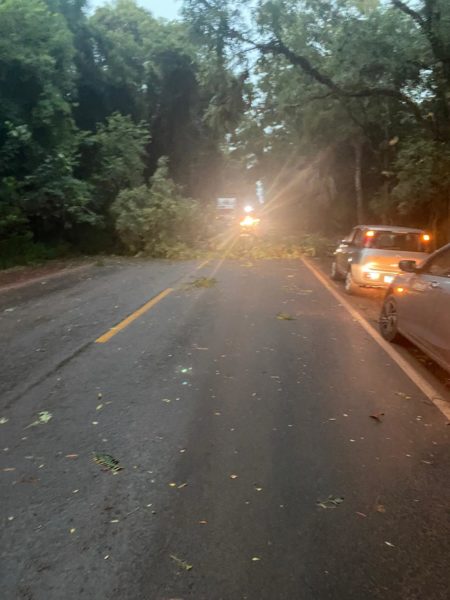 Na RS-342, próximo a comunidade de Alto da União, há uma árvore caída na pista que exige atenção aos motoristas. No trecho que liga Ijuí à Cruz Alta, diversas árvores estão caídas sobre a pista.
