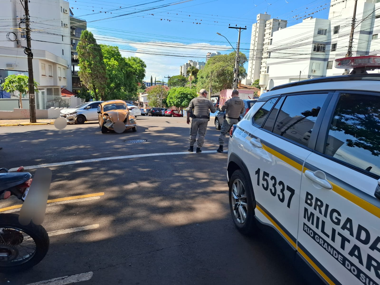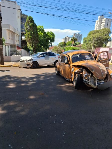 Uma colisão entre um Fusca e um Chevrolet Ônix deixou duas pessoas feridas na tarde desta quarta-feira, em Ijuí (18). O sinistro foi registrado no cruzamento da Rua Sete de Setembro com a Rua Floriano Peixoto.