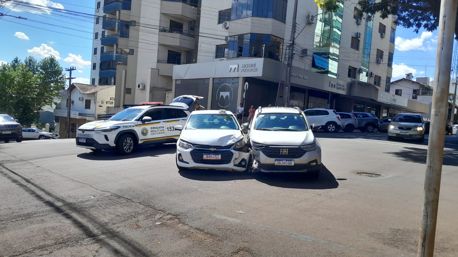 Na ocasião, uma Fiat Toro colidiu lateralmente com um automóvel da Chevrolet, na esquina da Rua Benjamin Constant e da Rua Venâncio Aires.