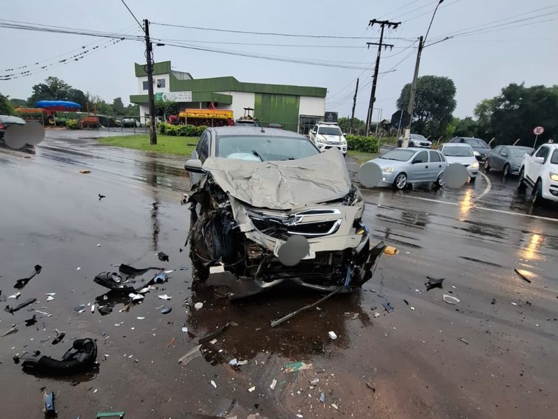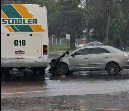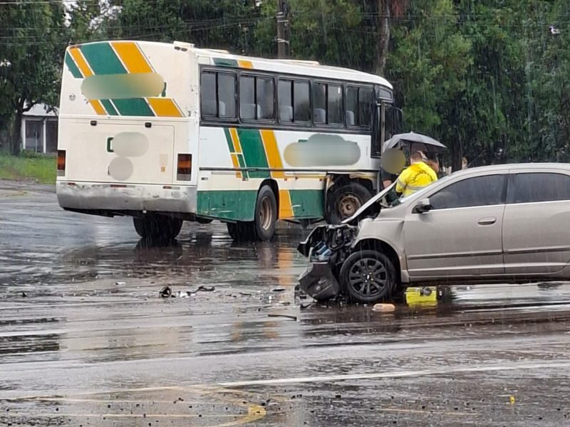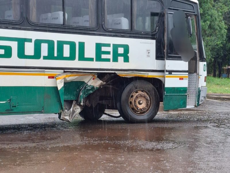 Colisão entre ônibus e automóvel ocorre na ERS 155, defronte à rodoviária de Ijuí