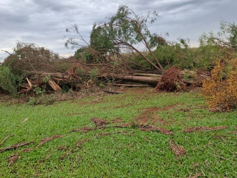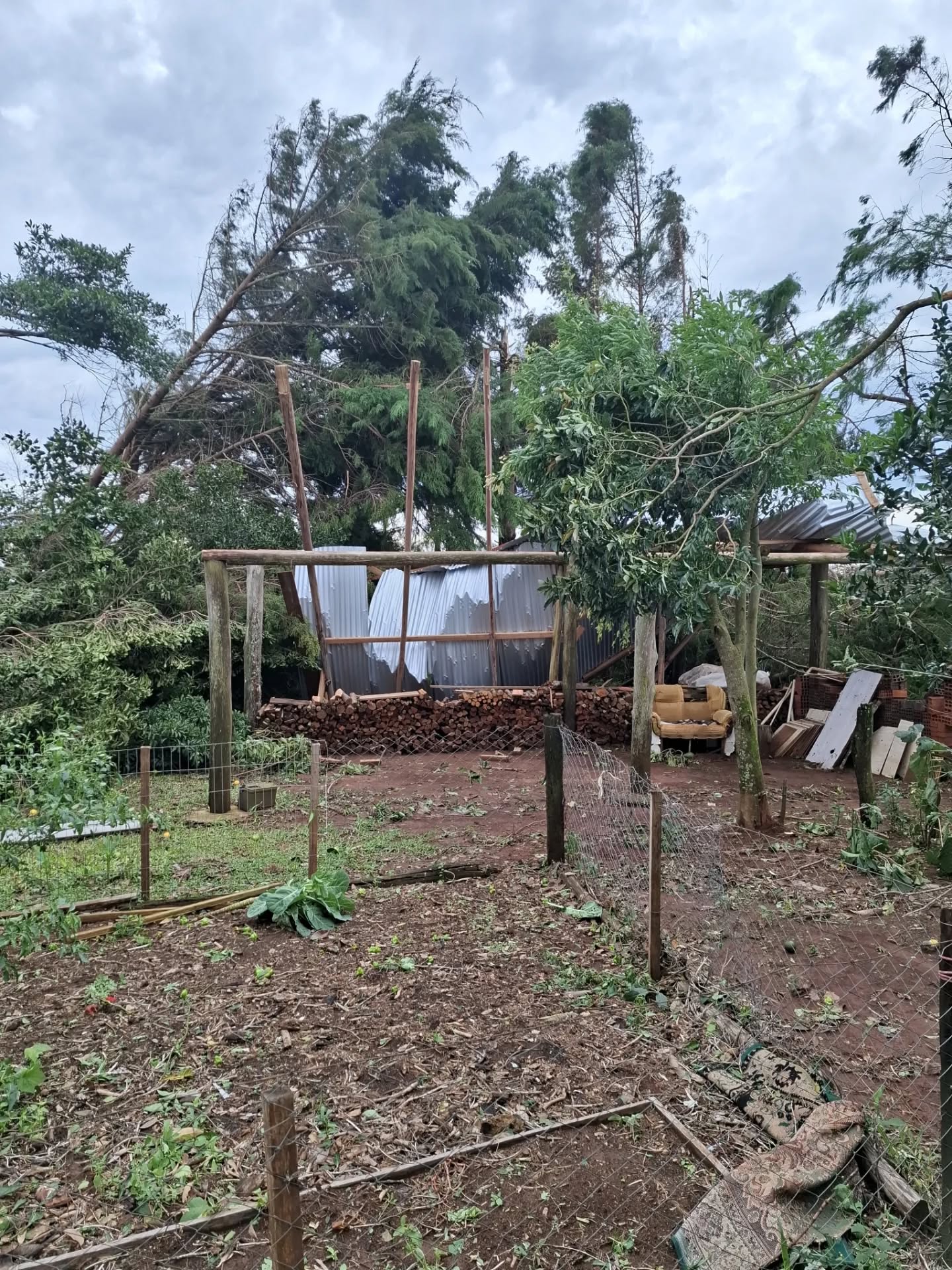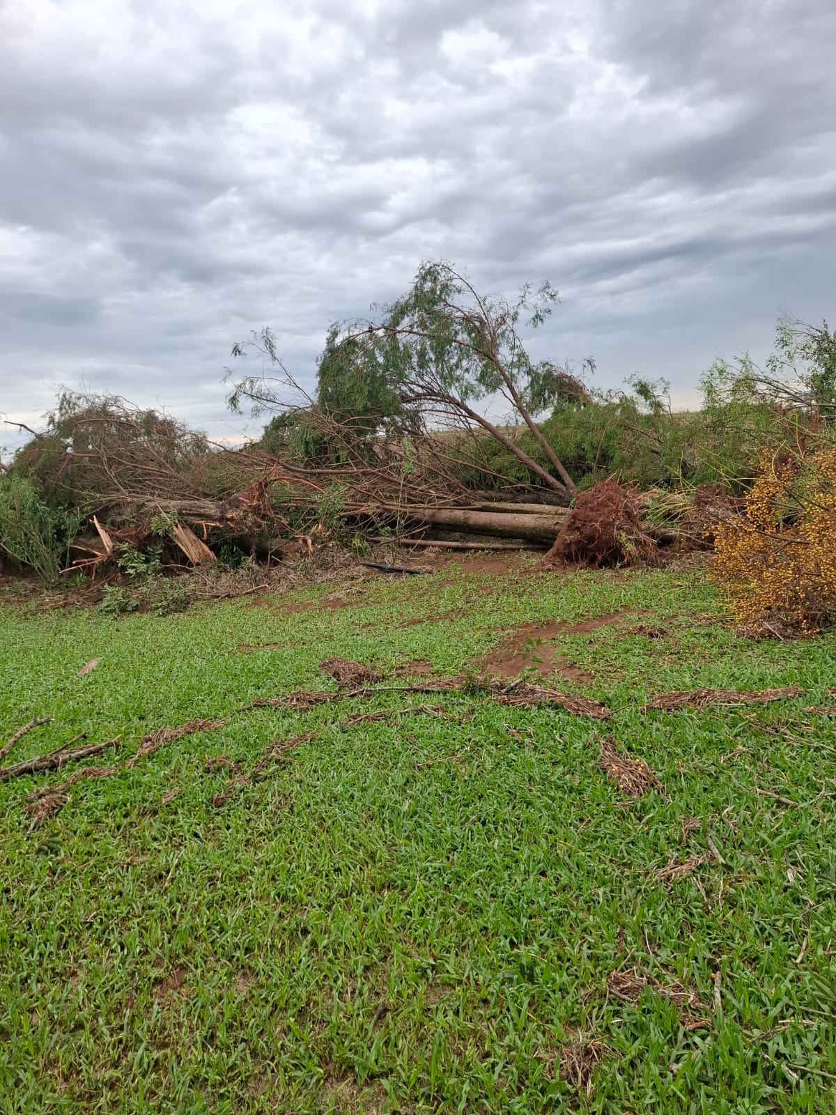 Em Cruz Alta, na localidade de Benjamin Nott, ao menos 13 residências foram destelhadas com a força do vento. Prefeitura de Cruz Alta e bombeiros distribuíram lonas para cobertura emergencial dos imóveis. O trabalho segue ao longo desta sexta-feira com o levantamento detalhado dos prejuízos. Ainda em Cruz Alta, no Clube Caça e Pesca, margens da BR 158, proximidades do acesso a Boa Vista do Incra, diversas árvores foram arrancadas.