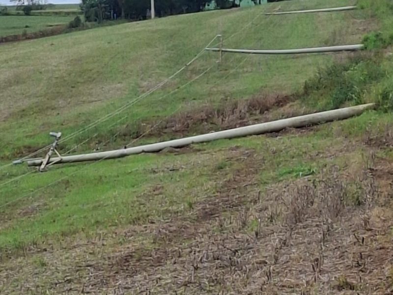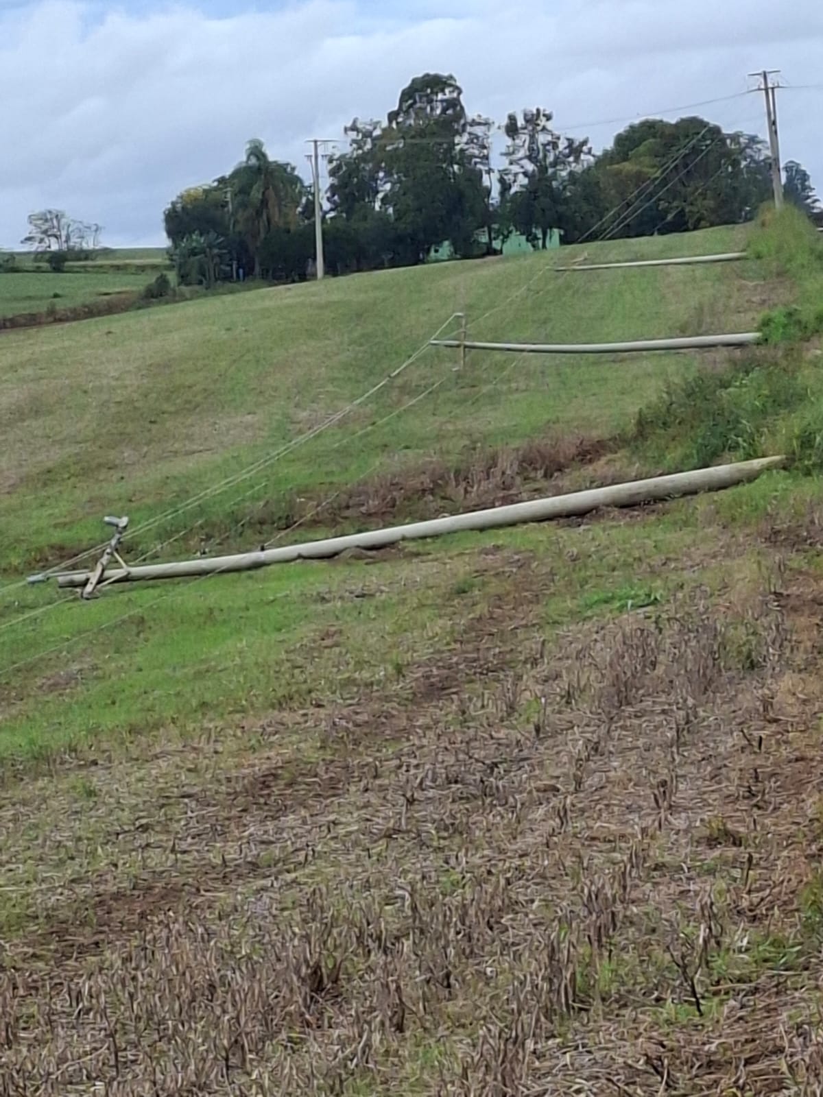 Num dos galpões atingidos havia maquinários e outro era de silo, com soja. Uma das estruturas teve o telhado de zinco totalmente arrancado. Numa cooperativa caiu o elevador sobre a balança. Além disso, o vendaval derrubou vários postes de energia elétrica na comunidade de Ponte Queimada. Com isso, moradores estão sem luz. Uma equipe da RGE deve chegar nessa manhã em Ponte Queimada para começar a resolução da falta de energia, mas não há previsão do retorno do fornecimento de luz.