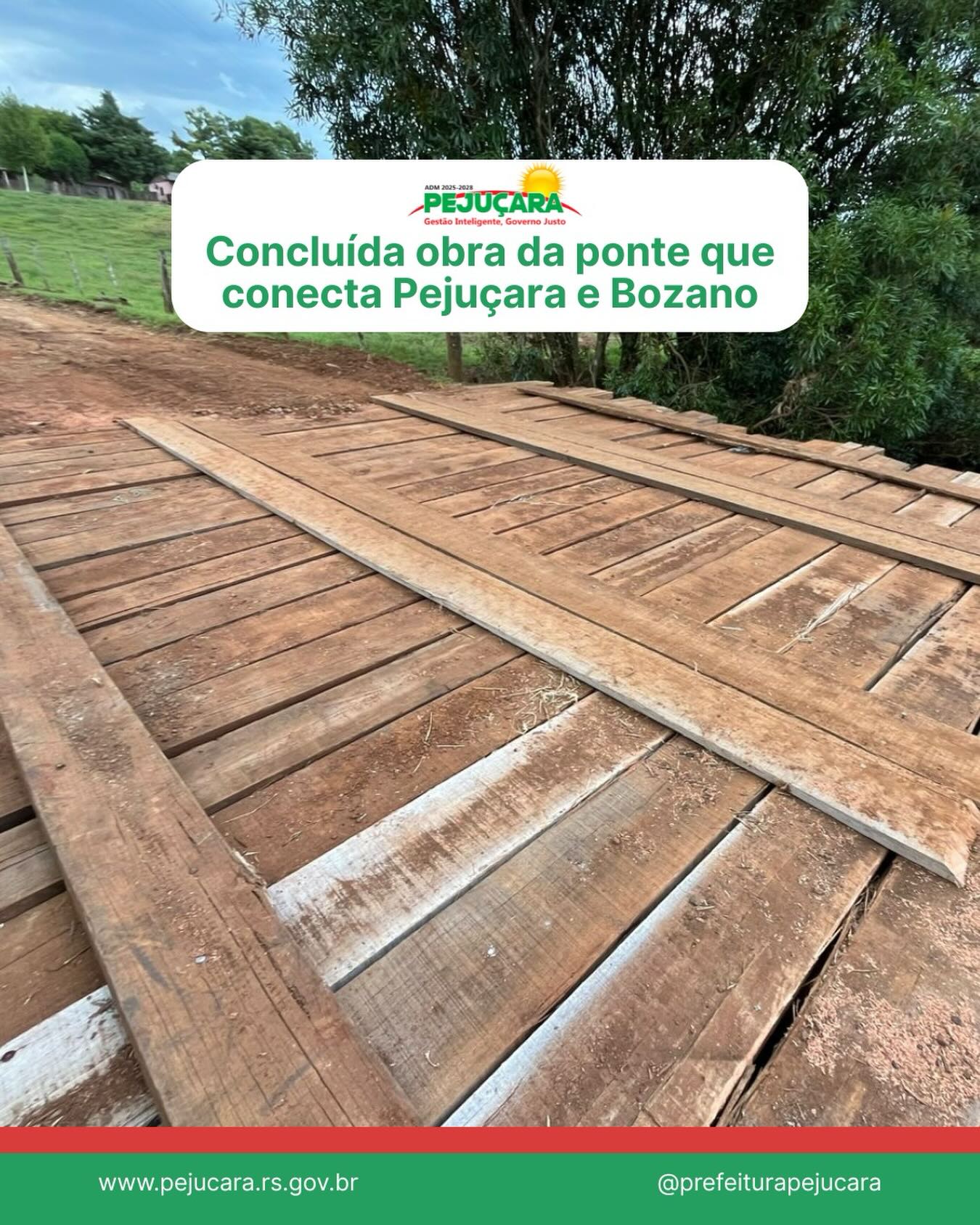 A ponte que estabelece a ligação entre Pejuçara e Bozano, na localidade entre Vista Alegre e São Valentim, encontra-se concluída e liberada para o tráfego. A estrutura reforça a mobilidade na região, assegurando melhores condições de deslocamento para moradores e produtores rurais. A melhoria é fruto do trabalho conjunto entre as administrações municipais, com foco na qualificação da infraestrutura e na segurança de quem utiliza o trajeto diariamente.