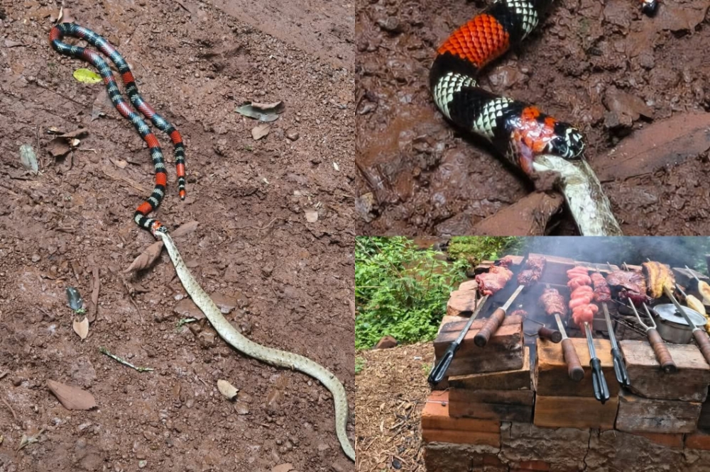 Na Cascata da Saci, na localidade de Lajeado Guerrilha, o grupo presenciou o embate entre uma cobra-coral e uma jararaca.