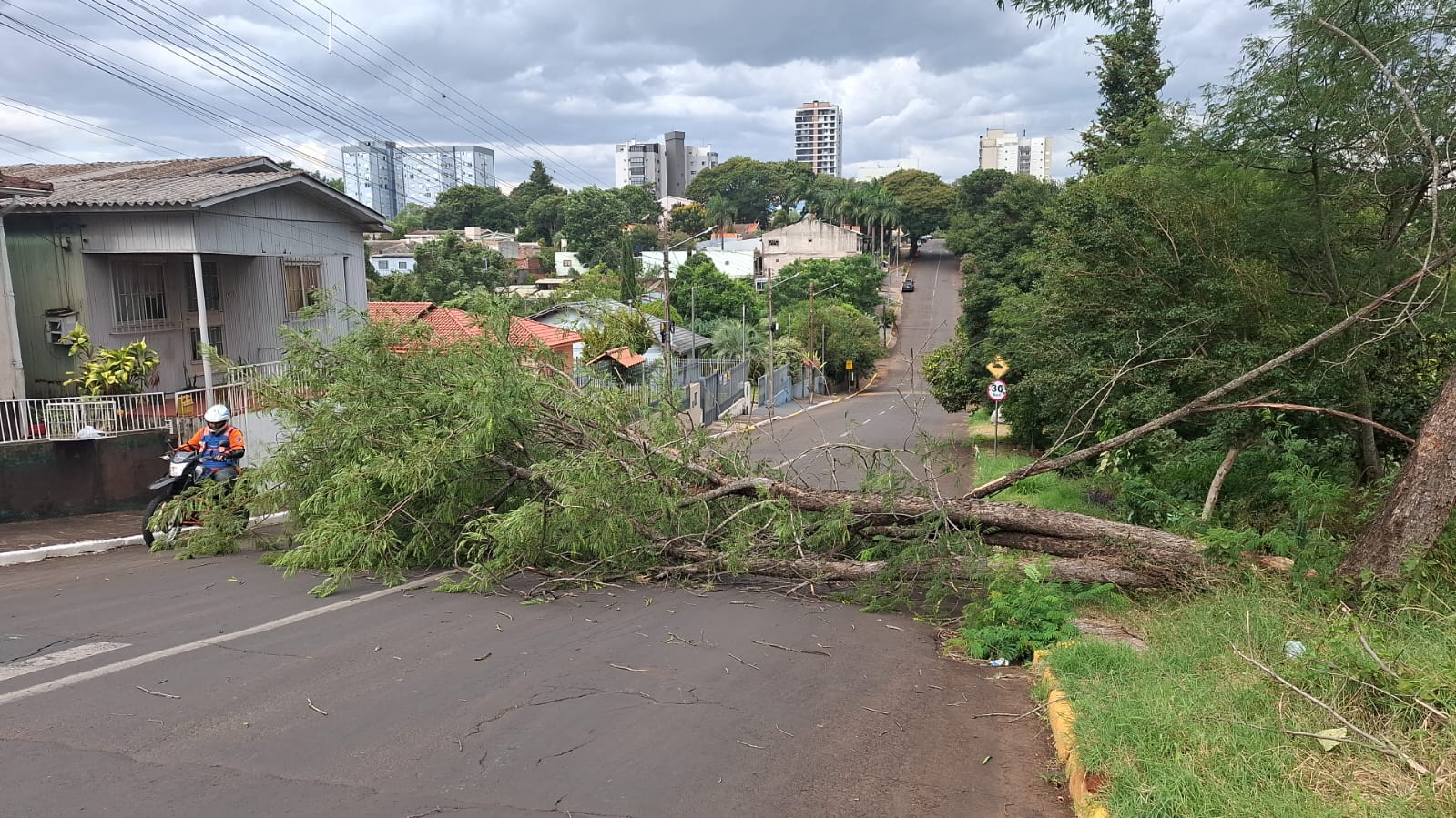 Em Ijuí, ontem à tarde, o vento derrubou um árvore na rua 12 de Outubro, próximo à rua Bento Gonçalves 17 municípios do Rio Grande do Sul informaram danos à Defesa Civil, em razão do temporal de ontem, Em Cruz Alta, houve queda de poste e árvores, além de danos em telhados de três residências. Em Entre-Ijuís, ocorreu queda de árvores, uma sobre garagem, o que causou prejuízos materiais, inclusive na rede elétrica. Já em São Nicolau, a prefeitura registrou queda de galhos, poste de energia e fiação, ainda danos em telhados de duas casas.