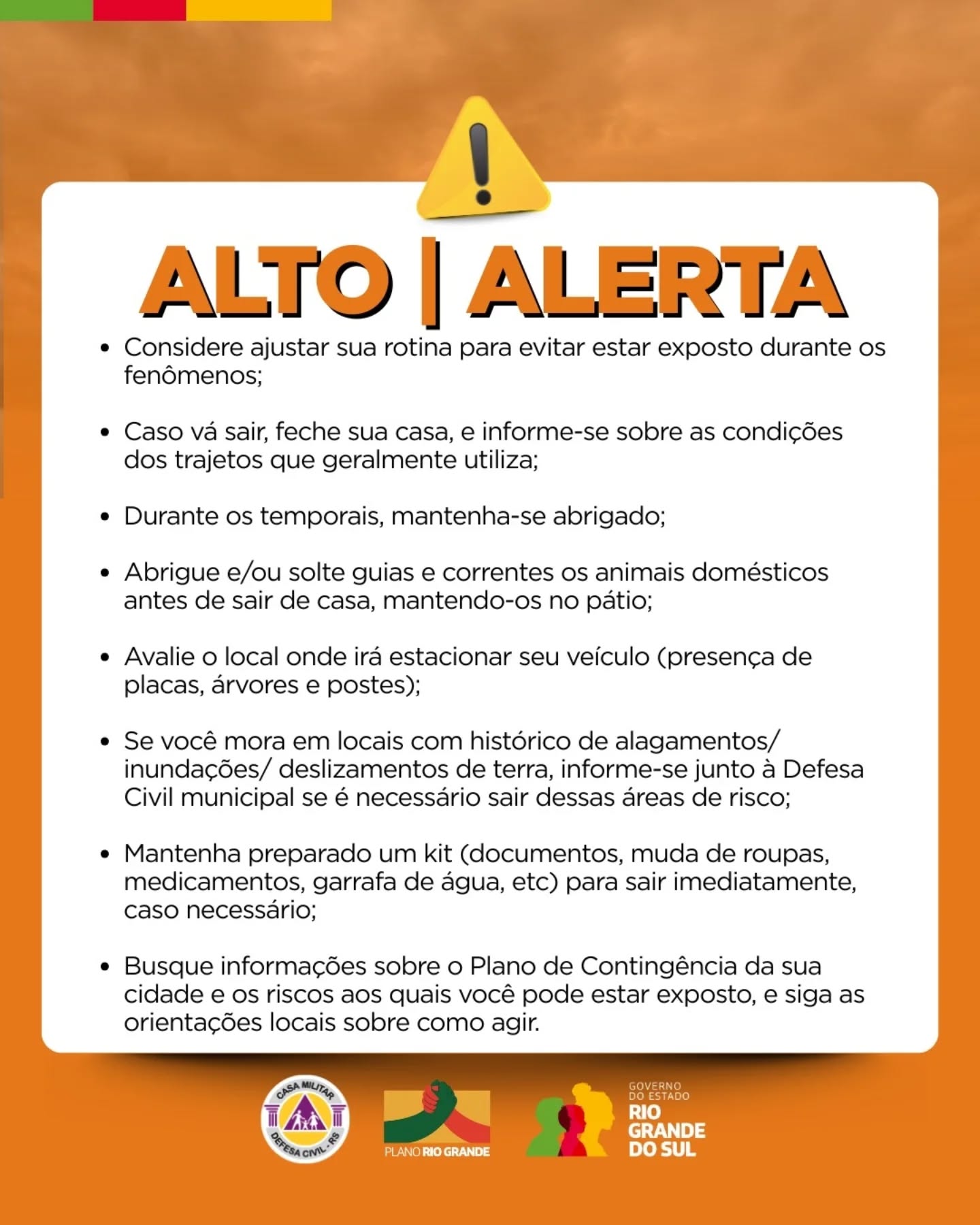 Procure informações junto à Defesa Civil da sua cidade, conheça os Planos de Contingência municipais para saber quais os riscos e como agir em caso de desastre no seu município.