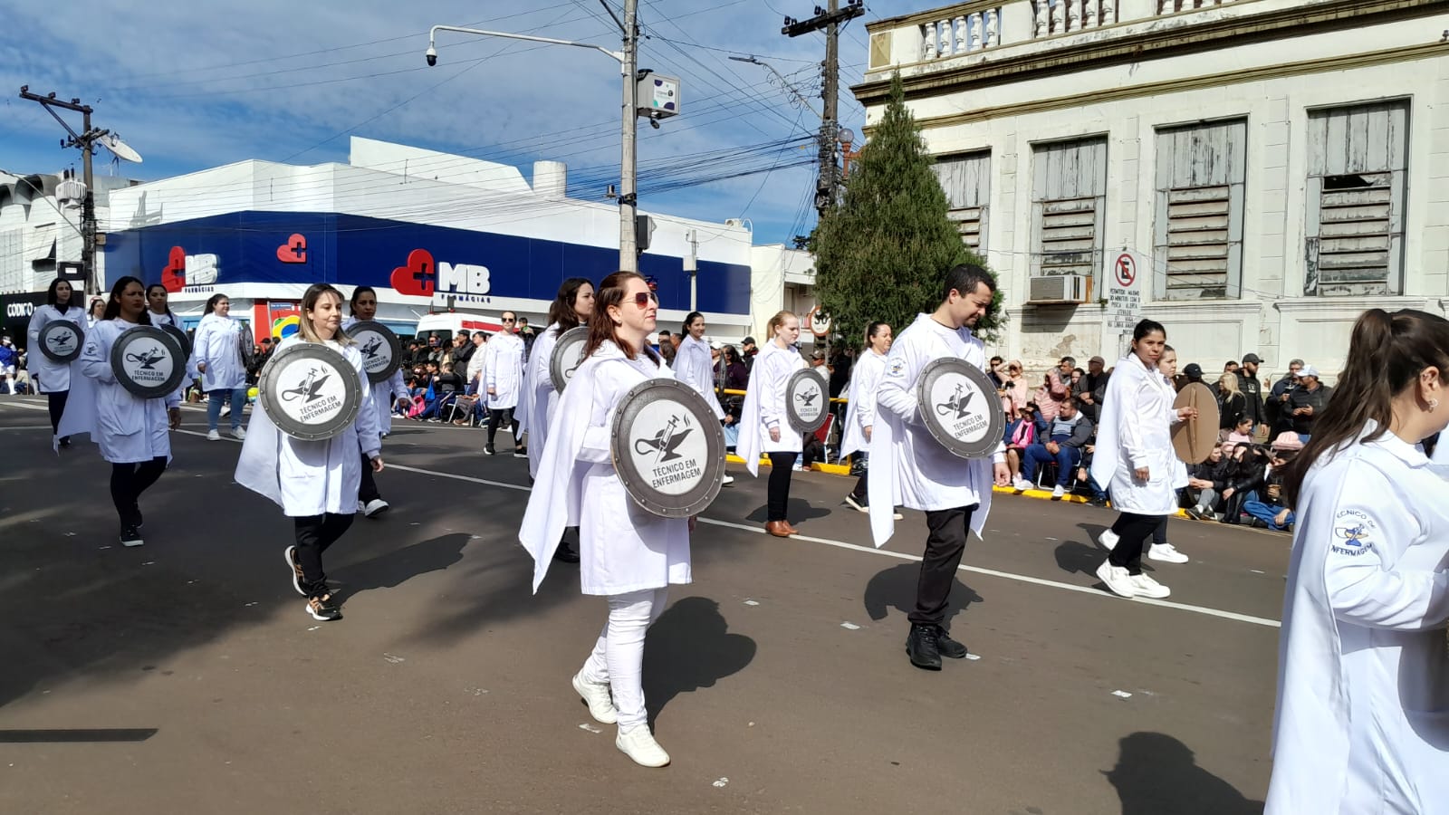 Em seguida, escolas municipais, estaduais e particulares desfilaram, muitas delas acompanhadas de suas bandas marciais, seguidas por instituições de ensino superior, hospitais e entidades locais homenageadas. Escolas e demais entidades aproveitaram o desfile para demonstrar diferentes projetos que realizam, por exemplo, nos segmentos ambiental, de tecnologia, saúde, empreendedorismo, dentre outros. Na sequência, ocorreu o desfile militar, com a presença do Colégio Tiradentes, 27º Grupo de Artilharia de Campanha, Brigada Militar, Corpo de Bombeiros e Coordenadoria de Trânsito, com encerramento das atividades.