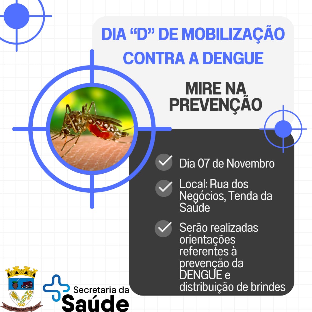 Neta sexta-feira, juntamente com a programação da 1ª Rua de Negócios de Ajuricaba, haverá o Dia D de Combate à Dengue, com atividades na Academia de Saúde da Praça Notélio Mariotti. O objetivo é conscientizar a população, por exemplo, sobre evitar água parada, locais onde se prolifera o mosquito Aedes aegypti, transmissor da doença. Vai ter distribuição de brindes aos participantes que visitarem o espaço e participarem das atividades.