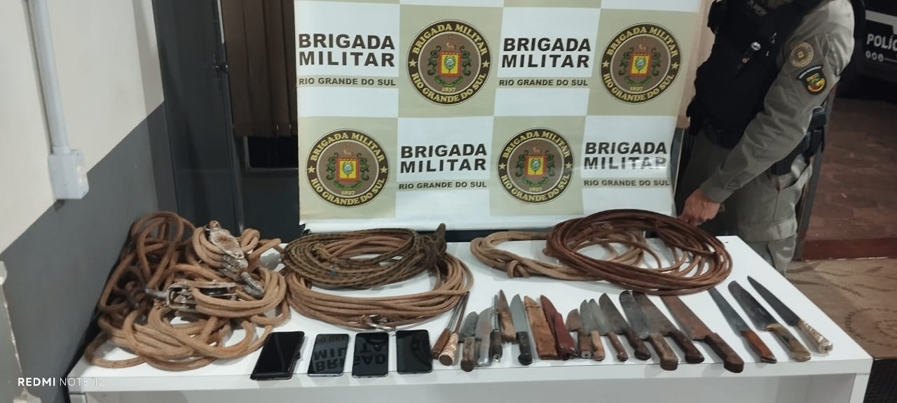 Os animais foram devolvidos ao dono, e os materiais apreendidos, incluindo facas, cordas, telefones celulares, munições e balanças, foram preservados para perícia.