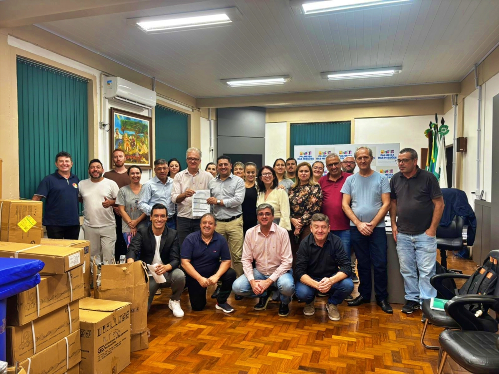 A Administração Municipal de Palmeira das Missões entregou equipamentos ambulatoriais para a rede de atenção primária à saúde. O ato aconteceu no gabinete do prefeito, com a presença de autoridades, vereadores e servidores das Unidades de Saúde. O investimento na aquisição de materiais para as unidades de saúde é de aproximadamente R$ 520 mil, com recursos oriundos de emenda parlamentares. Os equipamentos serão distribuídos a todas as Estratégias de Saúde da Família (ESFs).