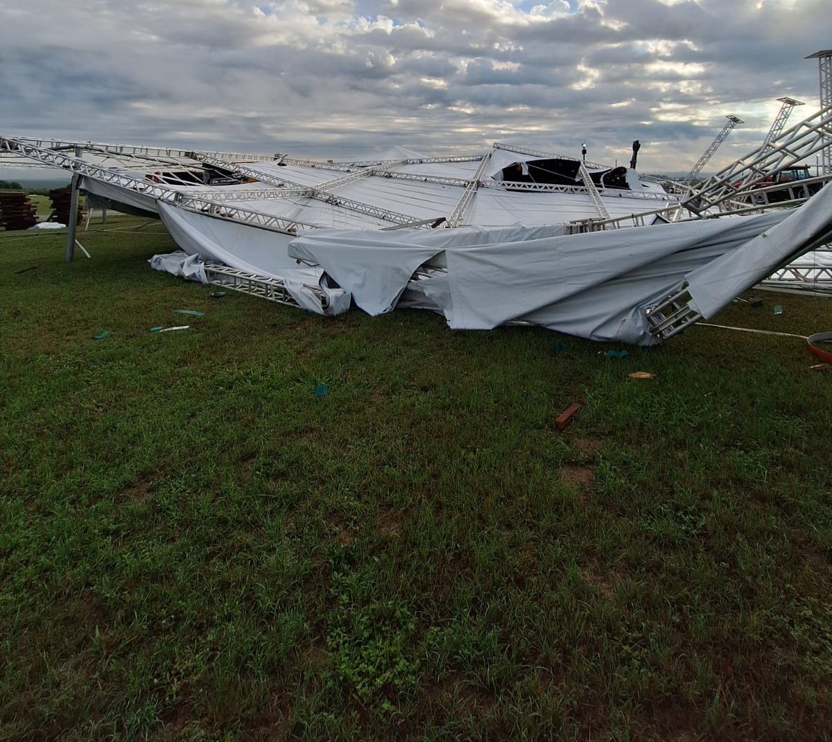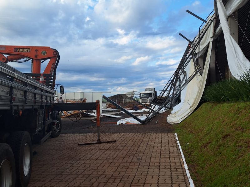 Algumas estruturas montadas para a Expoagro Cotricampo, em Campo Novo, foram danificadas pelo temporal do final da tarde de ontem. Houve destruição, especialmente, de pirâmides e materiais em lona de empresas ou demais expositores. A área de bovinos também teve danos. Com isso, o início da entrada de animais jersey e holandês, que aconteceria amanhã de manhã, foi adiado, possivelmente para domingo. Equipes da Cotricampo e das empresas expositoras atuam para reforma dos locais. A Expoagro segue confirmada para a próxima semana, entre 25 e 28 de fevereiro.