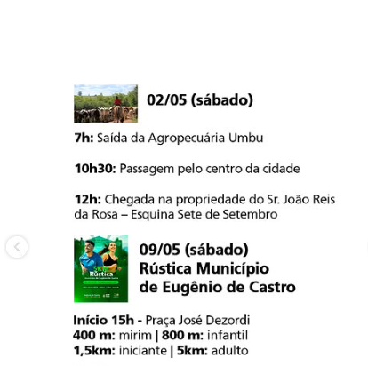 Abaixo, proximas programações do aniversário de Eugênio de Castro: