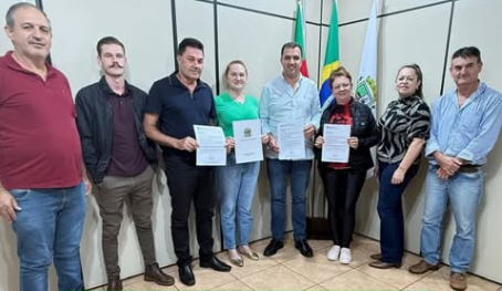 A entrega foi realizada pela assessora parlamentar Denise Karling de Oliveira, momento em que esteve acompanhada do vereador de Entre-Ijuís, Jordão Oliveira, da presidente do Progressistas de Eugênio de Castro, Sirlei Maria Shuster Reginaldo, e da bancada progressista do município.