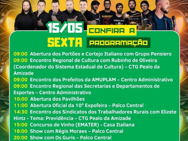 Durante a entrevista, foi destacado que a feira contará com shows gratuitos, com apresentações de artistas como Paula Machado, Indústria Musical, Régis Moraes, Os Guris, Flávio Dalcin e Banda Ouro, Estrela do Mar, Banda Rosas, Cassiano Scheer e Elemento Rock, além de atrações de humor.
