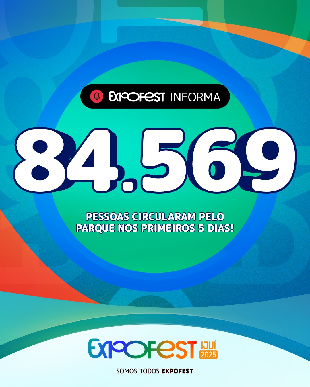 A Expofest Ijuí edição 2025 recebeu grande público nos primeiros dias de evento. Entre a quinta-feira, dia 09 de outubro, e a segunda, 13 de outubro, 84.569 pessoas circularam pelo Parque de Exposições Wanderley Burmann.