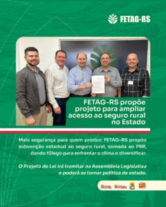 “Este projeto nasce da luta da FETAG-RS em defesa da agricultura e pecuária familiar, que são as mais afetadas pelas adversidades climáticas, ambientais e sanitárias. Nossa prioridade é garantir uma política de Estado que assegure renda, dê condições dignas de produção e estimule práticas sustentáveis no campo. É um passo fundamental para ampliar a proteção e a tranquilidade das famílias rurais gaúchas.”