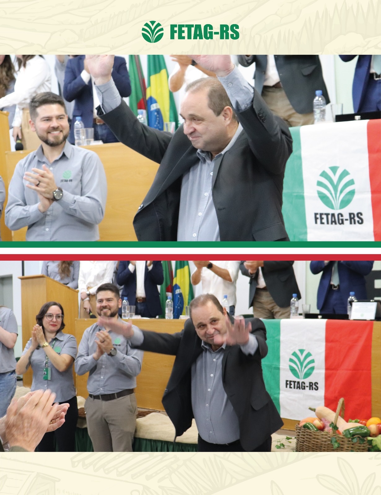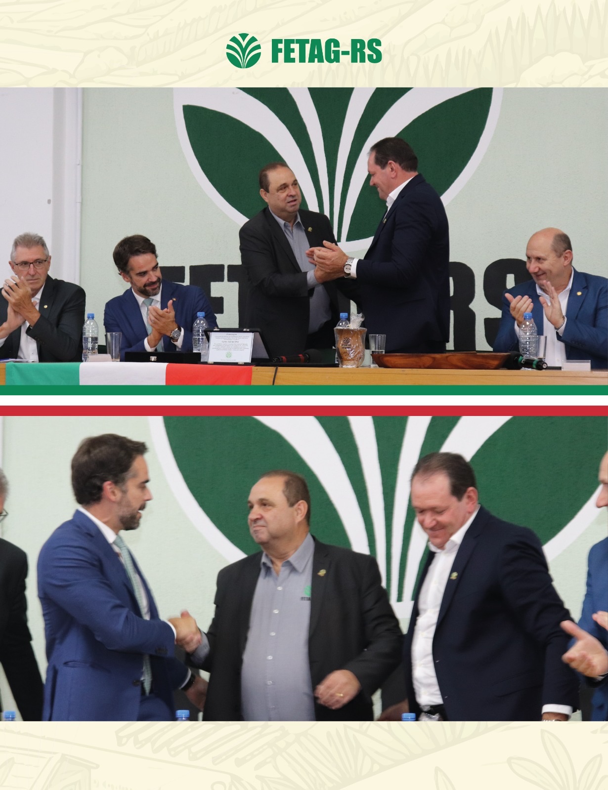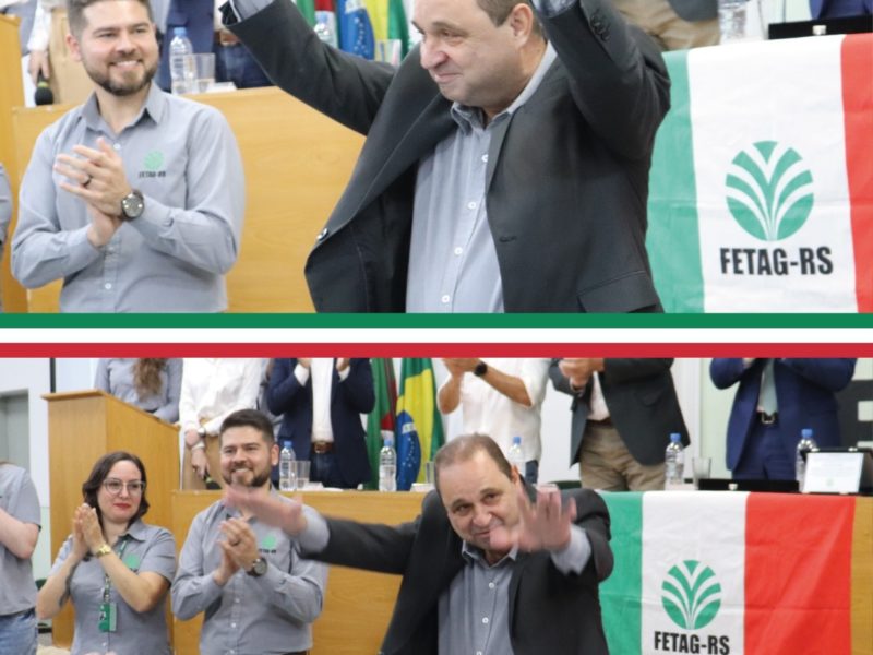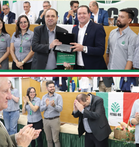 A Federação dos Trabalhadores na Agricultura no Rio Grande do Sul (FETAG-RS) realizou, ontem, 27, a solenidade de transmissão de presidência. Após 12 anos à frente da Federação, desde 2014, Carlos Joel da Silva passou a presidência ao vice-presidente, Eugênio Zanetti, que assume a condução da entidade para o próximo período.
