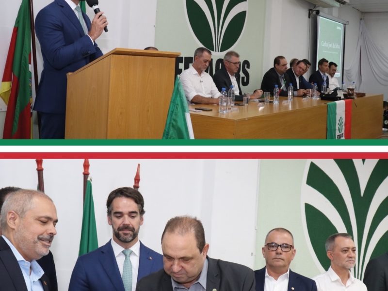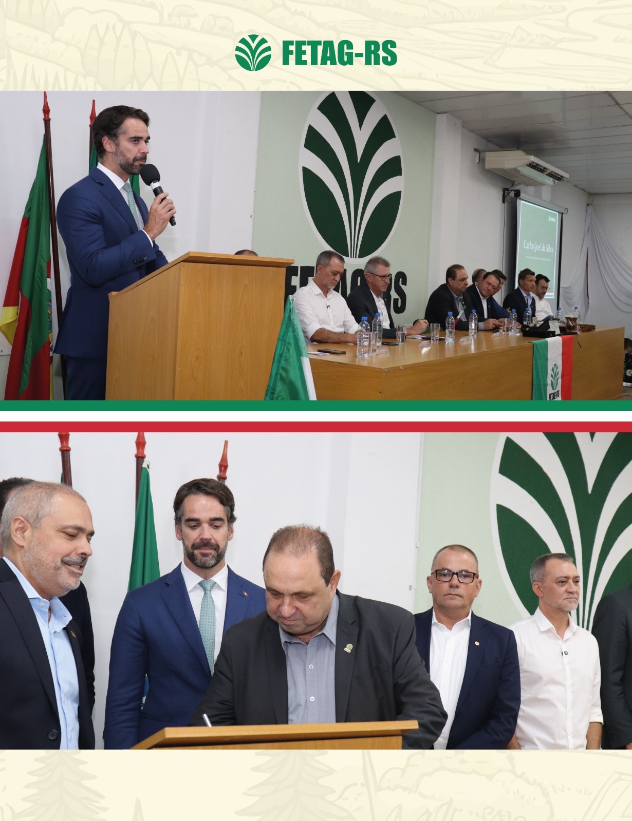 A cerimônia contou com a presença de autoridades estaduais e federais, entre elas o governador do Estado do Rio Grande do Sul, Eduardo Leite, além de representantes do Governo Federal, da Câmara dos Deputados, da Assembleia Legislativa, da FAMURS, da OAB/RS e do SENAR-RS.