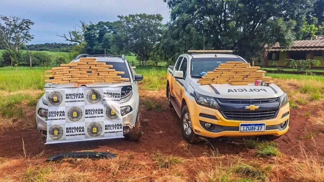 Uma ação policial resultou na apreensão de uma grande quantidade de droga na tarde de ontem (10) em Santo Augusto. Por volta das 15h, uma guarnição que realizava abordagens de rotina na ERS-155, no quilômetro 72, visualizou um veículo Fiat Toro que se deslocava da área de fronteira em direção ao município. Ao receber ordem para parar, o condutor — que estava sozinho — chegou a desembarcar, mas em seguida arrancou bruscamente, iniciando fuga. Os policiais realizaram acompanhamento e o veículo entrou em uma estrada vicinal com direção ao interior de Nova Ramada. Em determinado ponto, o motorista abandonou o automóvel em meio a uma lavoura de soja e fugiu a pé. Apesar das buscas, ele não havia sido localizado até a última atualização dessa matéria.