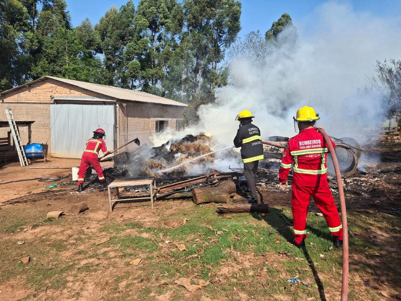 Um incêndio destruiu completamente um galpão rural na comunidade Nova Tupã, interior do município de Tupanciretã, na tarde deste domingo, 05.